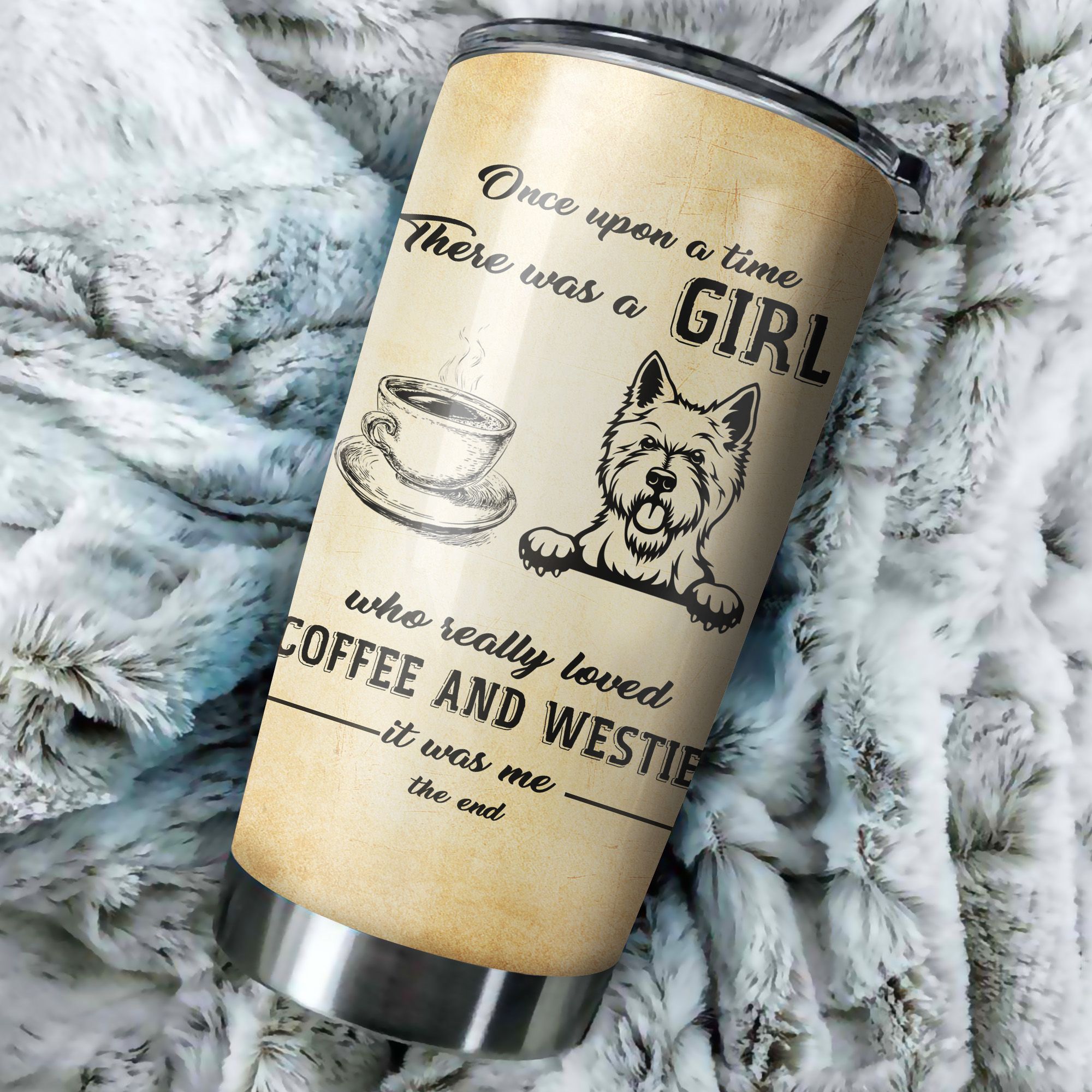 Girl really love coffe and Westie, stainless steel tumbler cup for dog lover, 20 oz