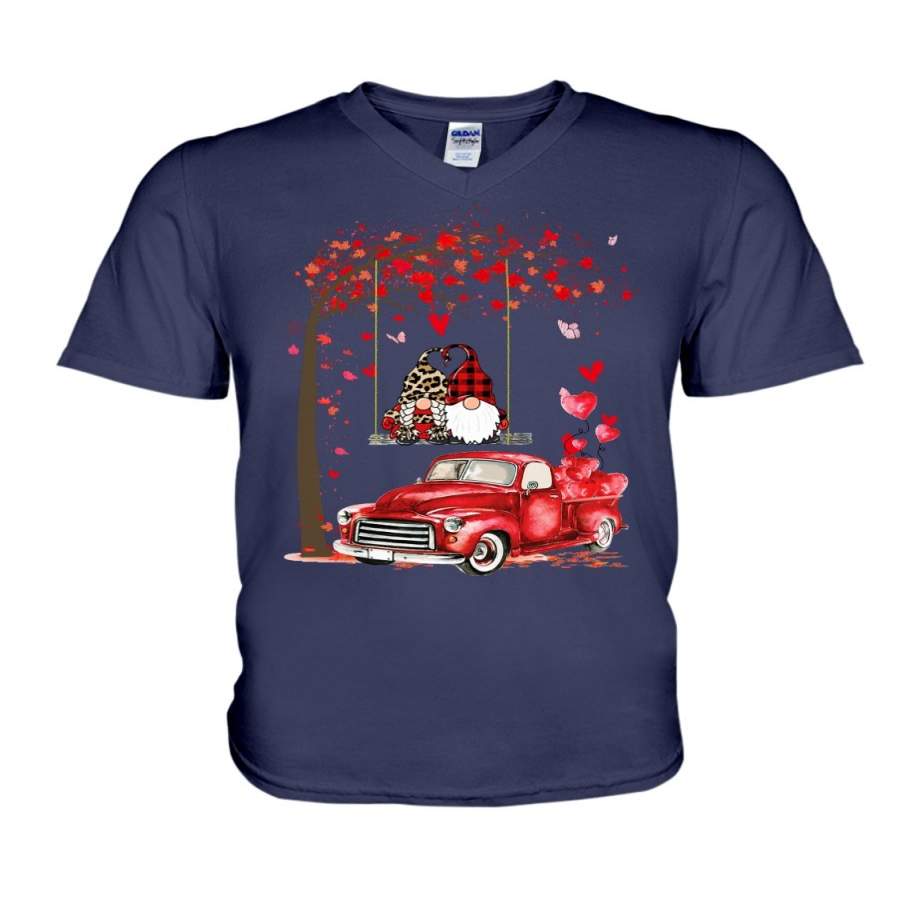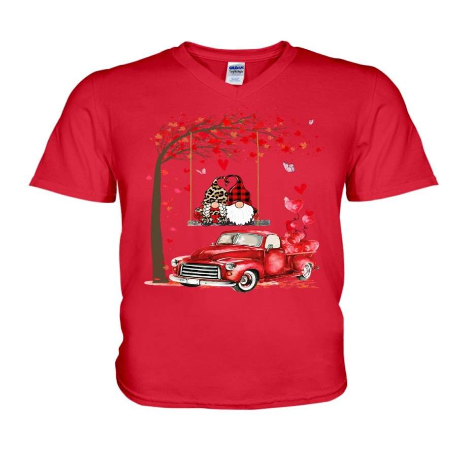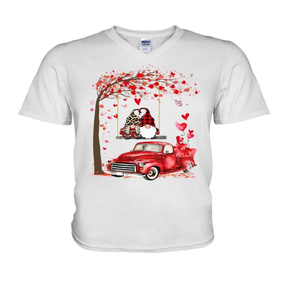 Gnome Red Truck Couple Valentine Gift Guys V-Neck