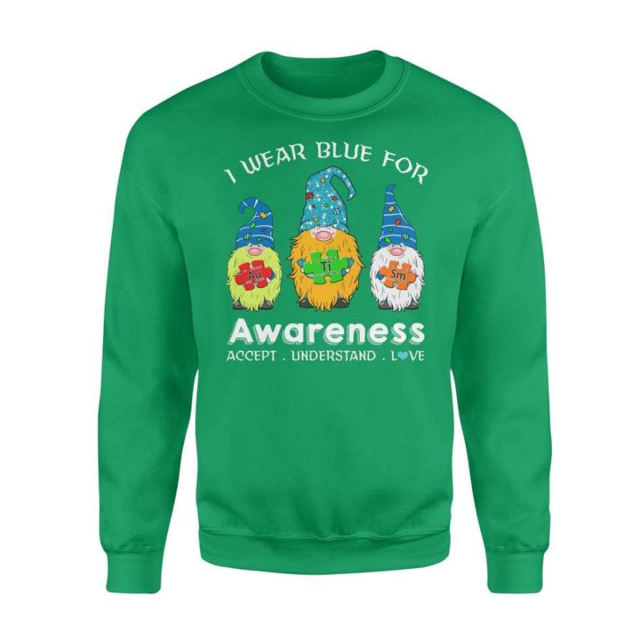 Gnomies I Wear Blue For Autism Awareness Accept Understand Love – Standard Fleece Sweatshirt