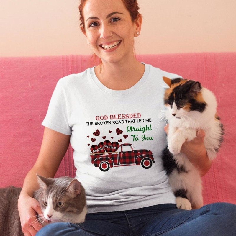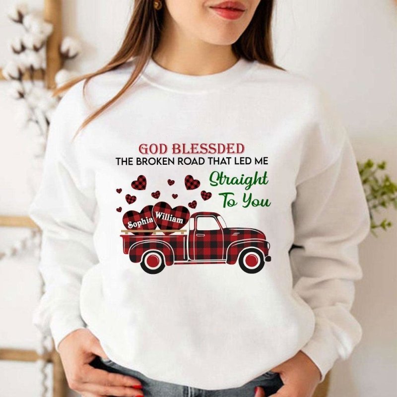 God Blessed The Broken Road Personalized Christmas Shirt For Couple