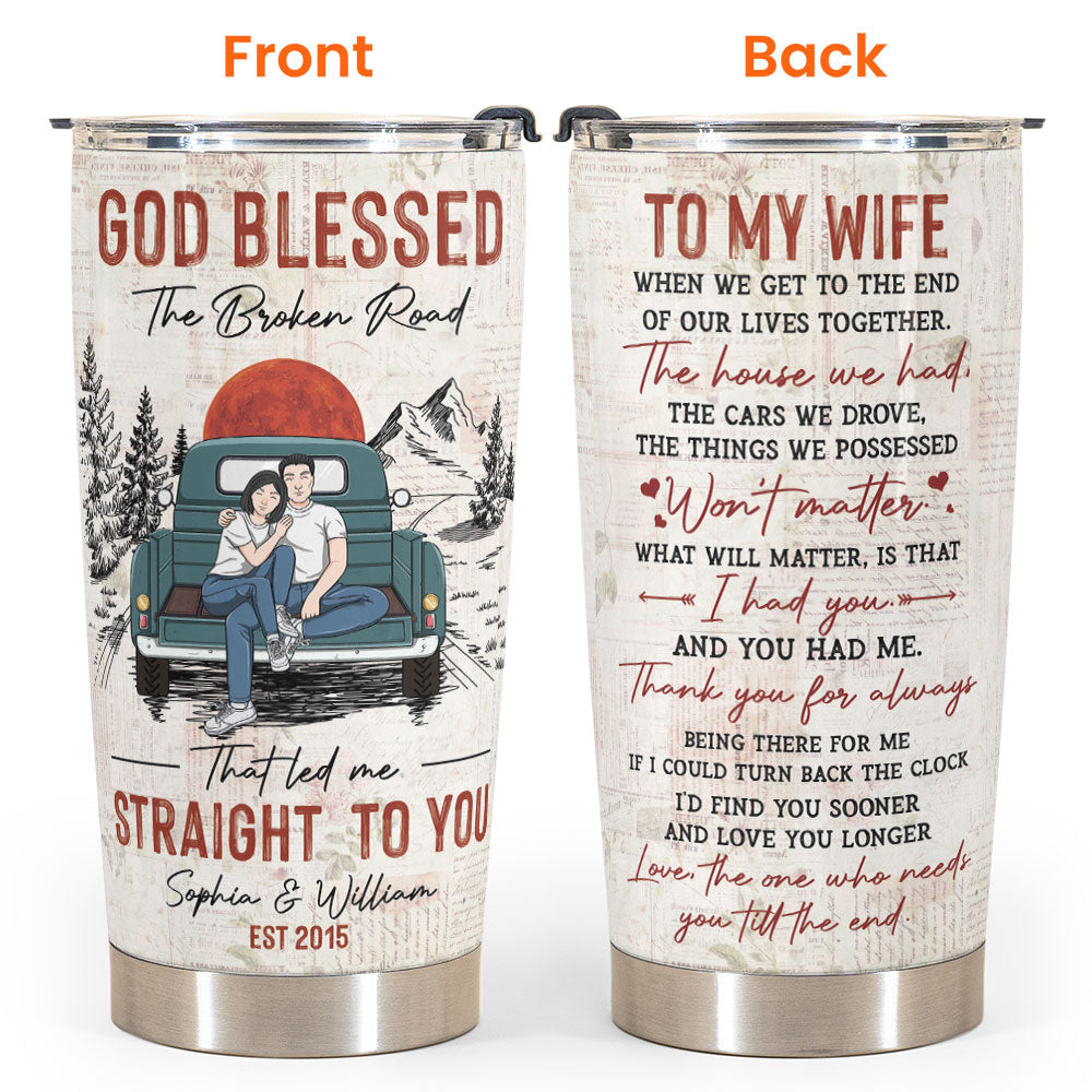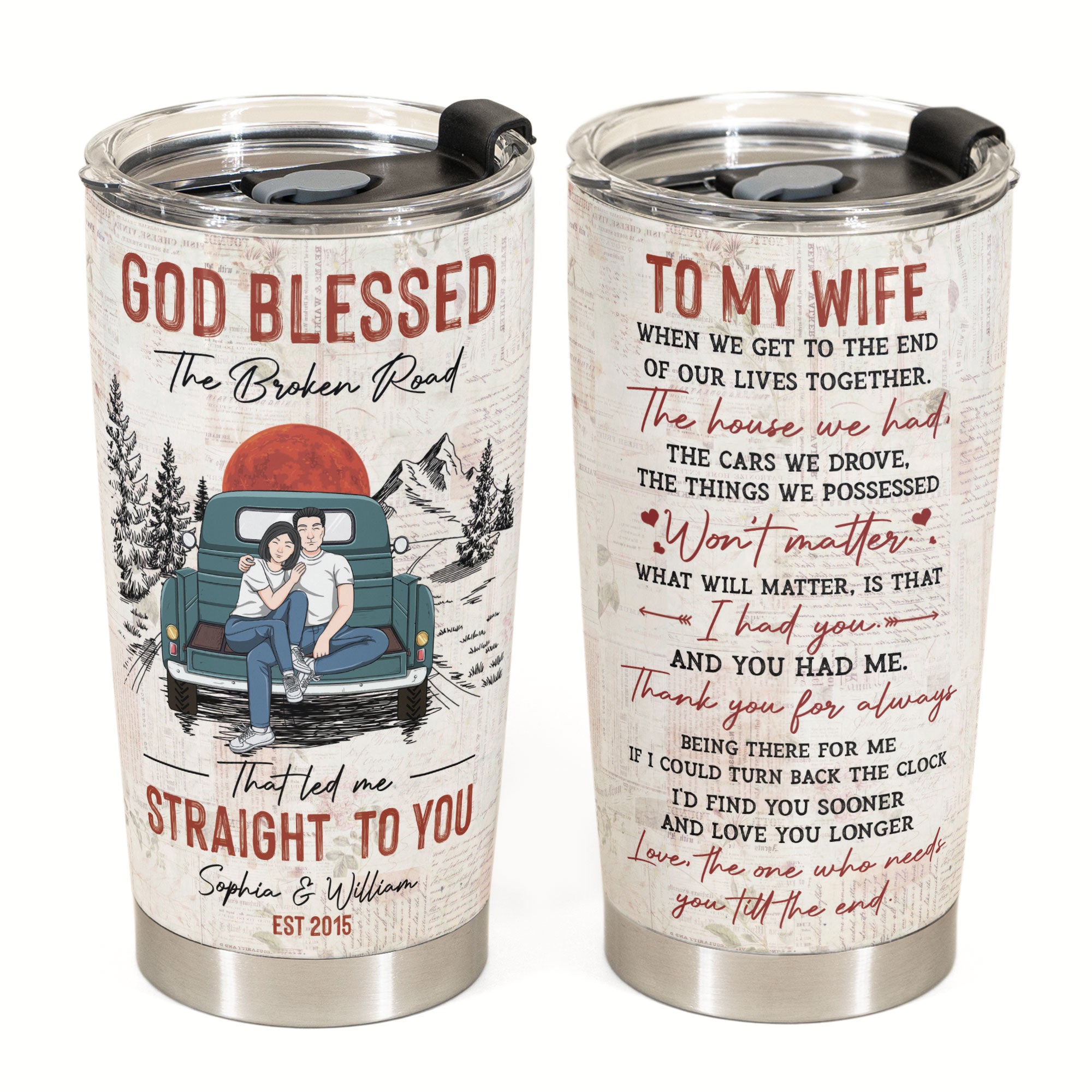 God Blessed The Broken Road – Personalized Tumbler Cup – Anniversary Gift For Couples, Husband, Wife, Spouses