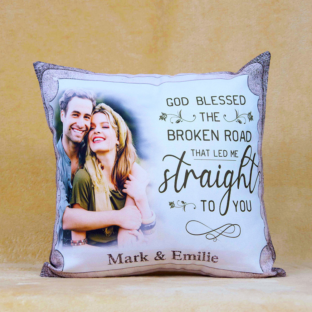 God Blessed The Broken Road That Led Me Straight To You, Personalized Pillow, Gift For Couples