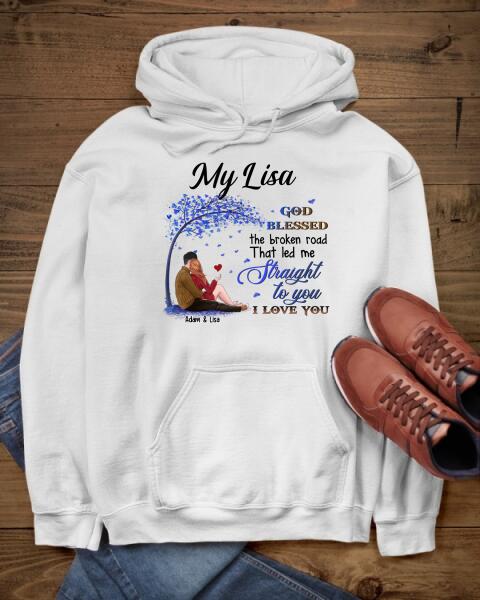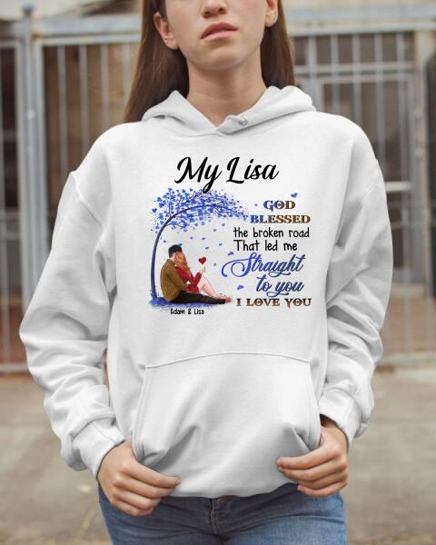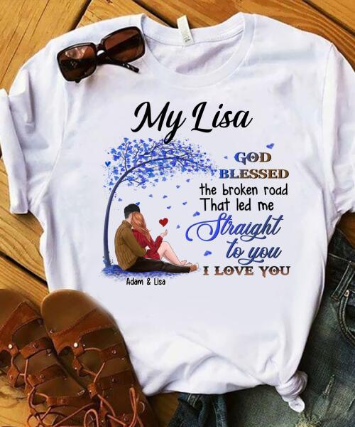 God Blessed The Broken Road That Led Me Straight To You – Personalized White T-Shirt – Unique Valentine Gift For Couple