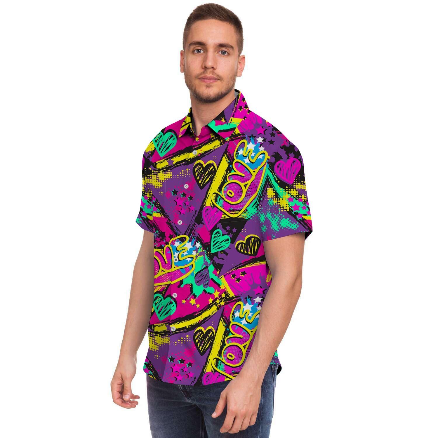 Graffiti Airbrush Love Print Men’S Short Sleeve Shirt