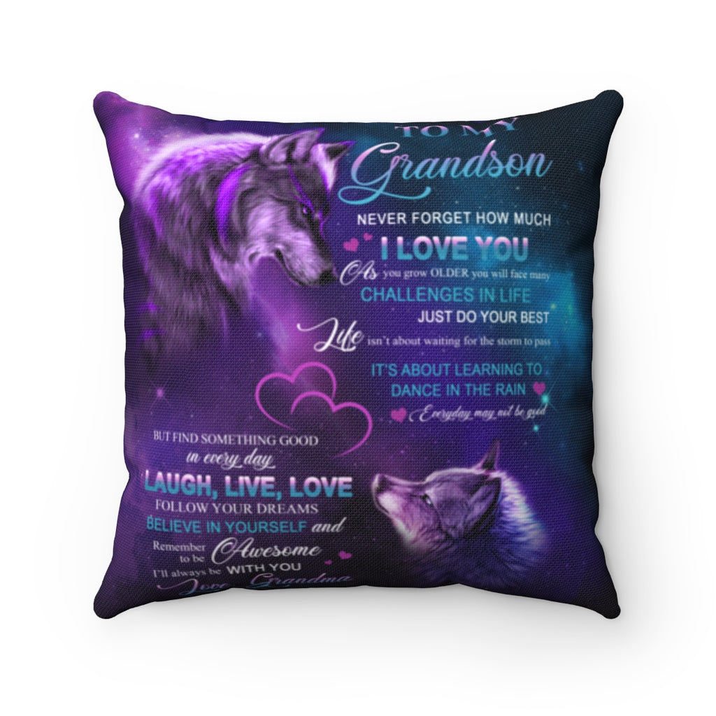 Grandson Pillow, Never Forget How Much I Love You, I’Ll Always Be With You Wolf Pillow, Lovely Gift For Grandson