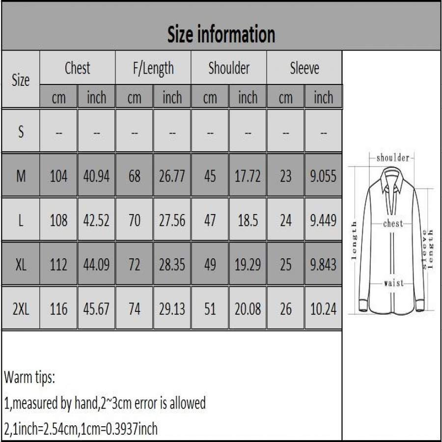 | Size | S | M | L | XL | 2XL | 3XL | 4XL | 5XL |