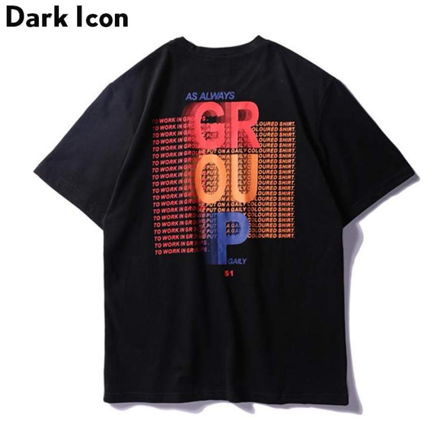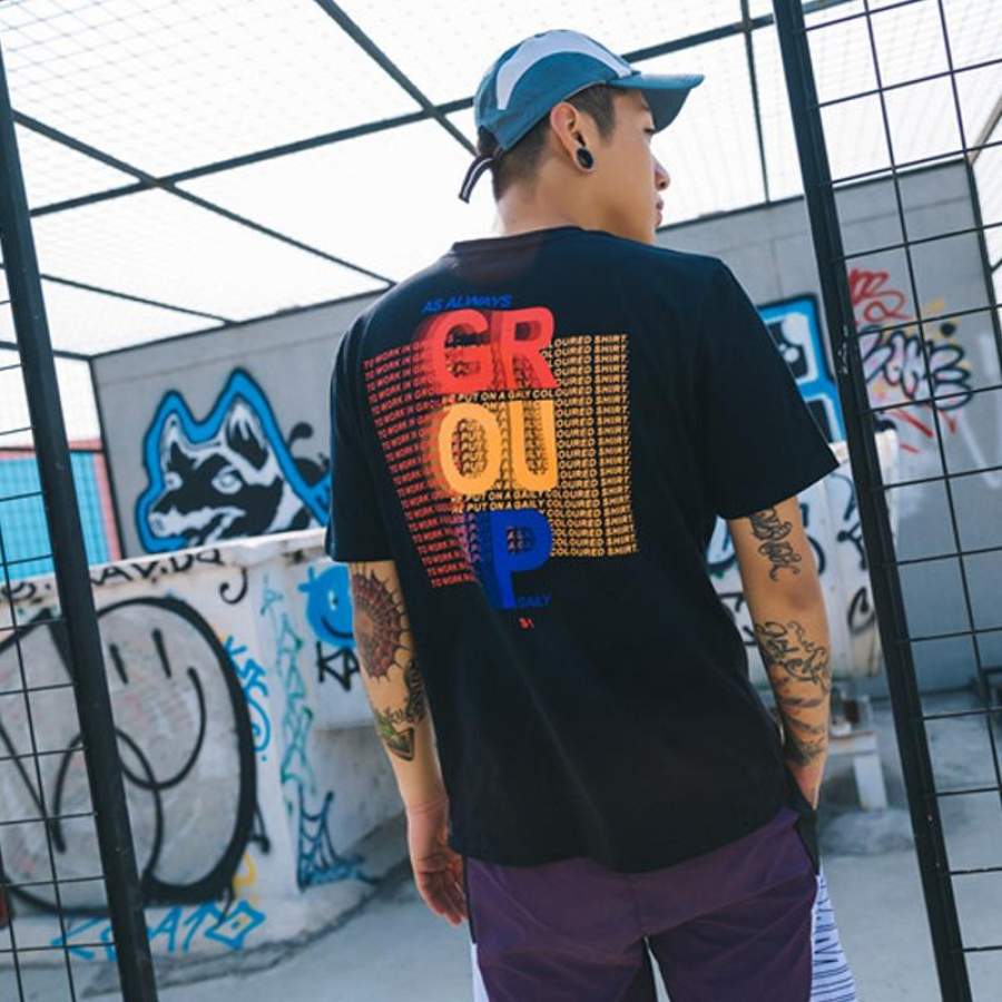 Group Letter Printed T-shirt Men Summer Novelty Printing Men’s T Shirt Casual Tee Shirts Black White Cotton