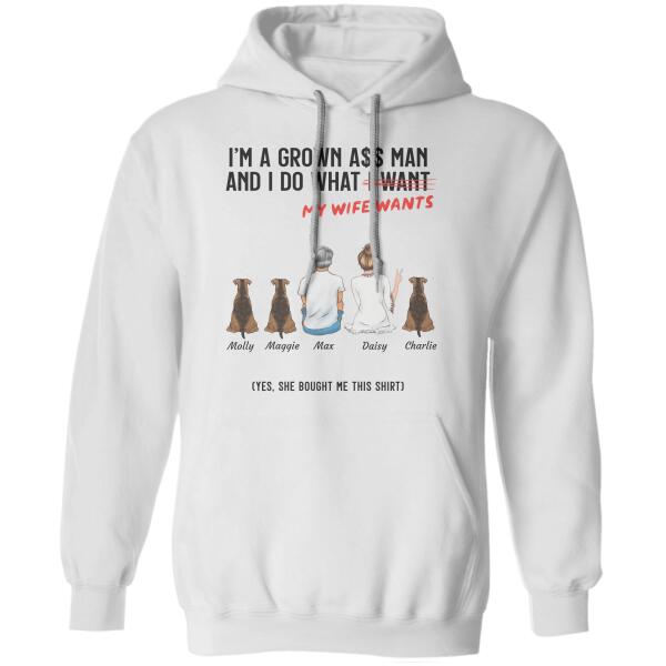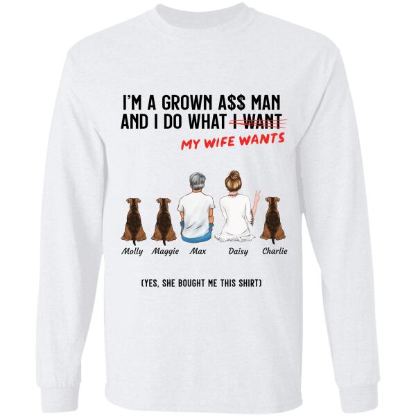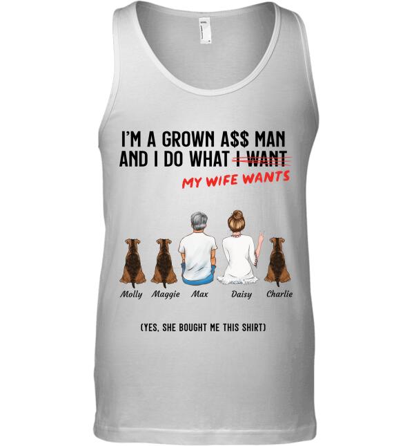 Grown Man Do What His Wife Wants Couple And Dog, Cat Personalized T-Shirt