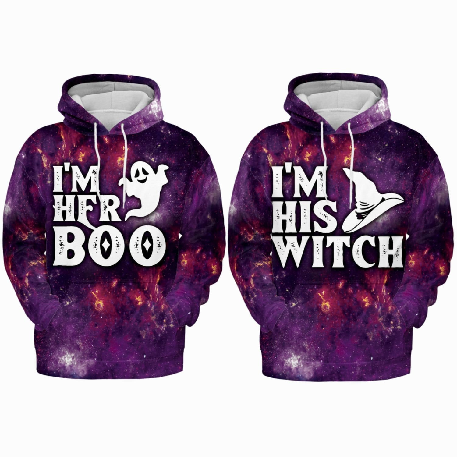Halloween Galaxy His Witch Her Boo Hoodie For Couple 3D #V