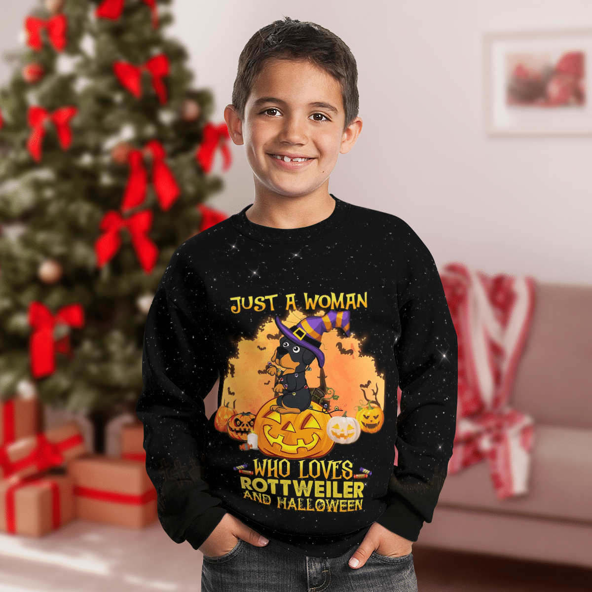 So whether you're looking to show off your own name or create a personalized gift for someone special, LateAndLow Store has got you covered. Start designing your own custom Halloween Pumpkin Just A Woman Who Loves Rottweiler Hlw11 Kid Sweatshirt print-on-demand product today, and let us bring your vision to life!
