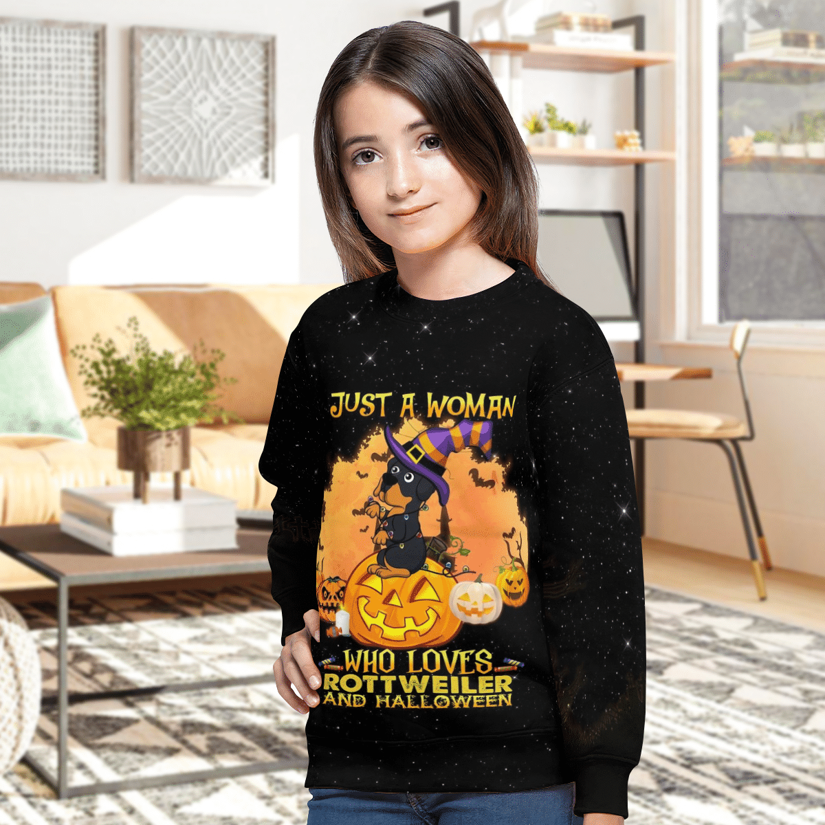 Our print-on-demand products are made with the highest quality materials, ensuring that your personalized Halloween Pumpkin Just A Woman Who Loves Rottweiler Hlw11 Kid Sweatshirt design looks great and feels comfortable. You can wear your new custom product with pride or give it as a unique and memorable gift that will be cherished for years to come.
