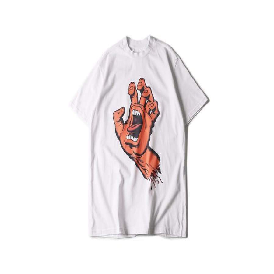 Hand Mouth Printed Hip Hop T-shirt Men Short Sleeve Cotton Summer O-neck Casual Men T shirt Male Tee Shirts Top White