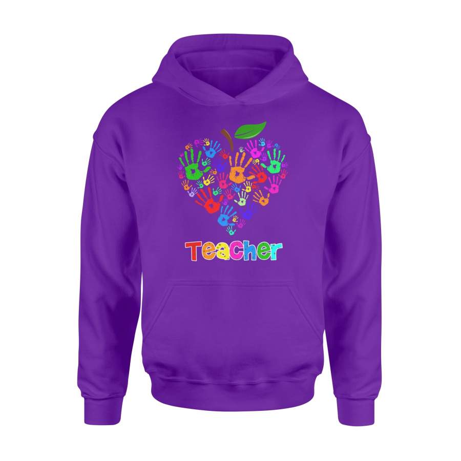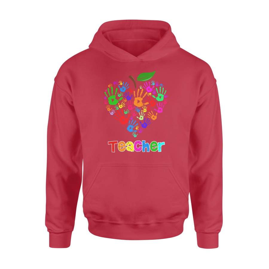 Hand Prints Heart Shape Lovely Design For Teachers – High Quality Cotton Hoodie