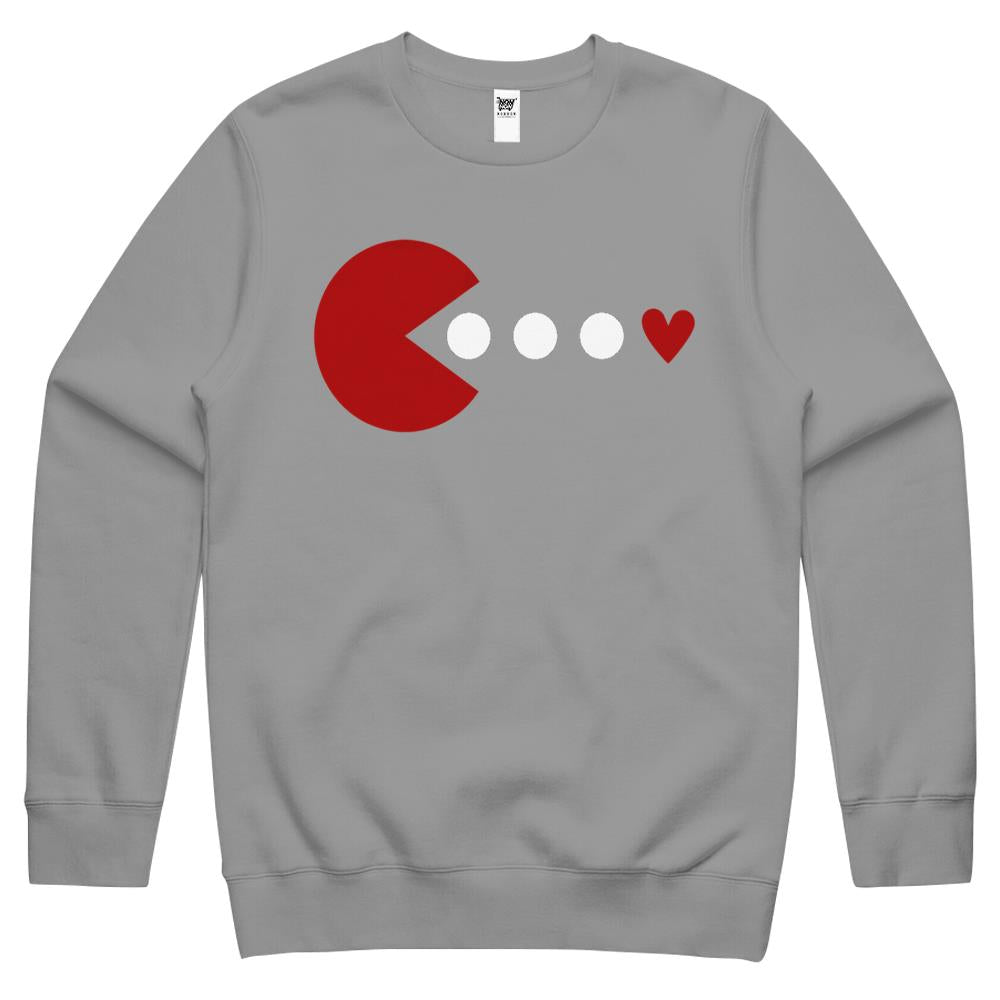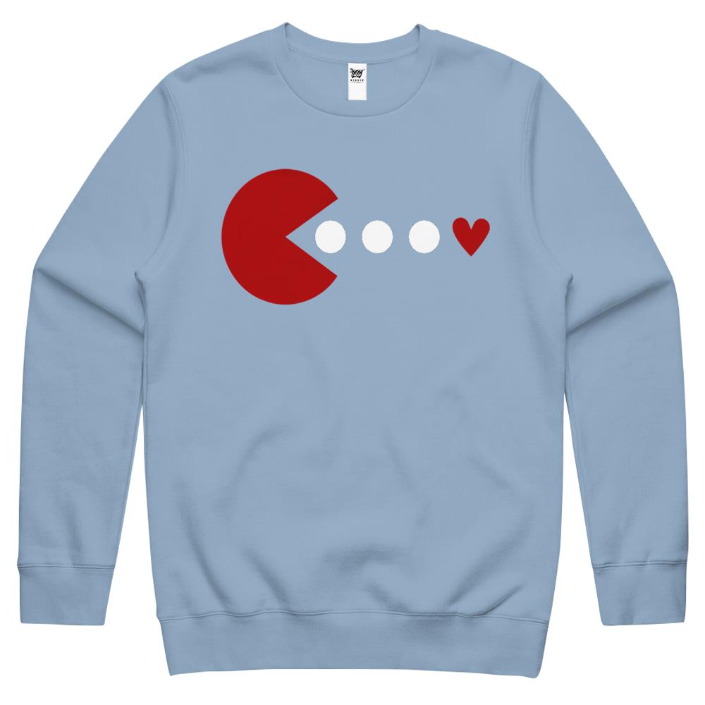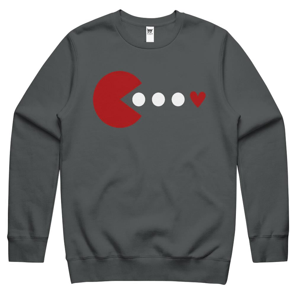 Happy Valentines Day Packman Love Cute Heart Valentine Crewneck Sweatshirt
