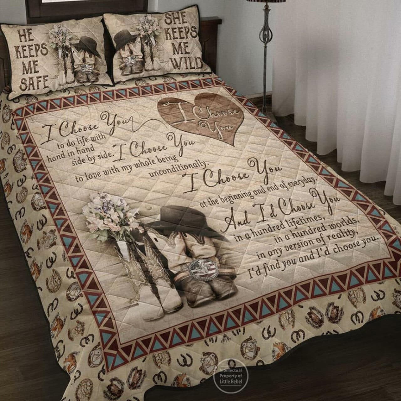 He Keeps Me Safe She Keeps Me Wild Cowboy Couple Gift – Quilt Set