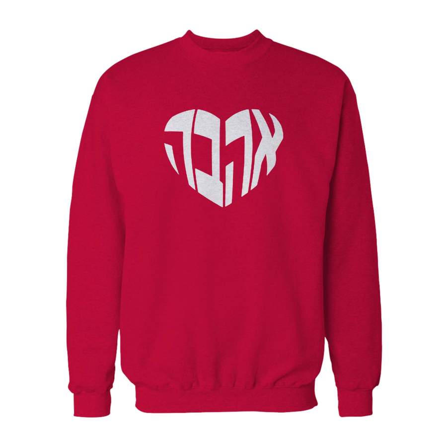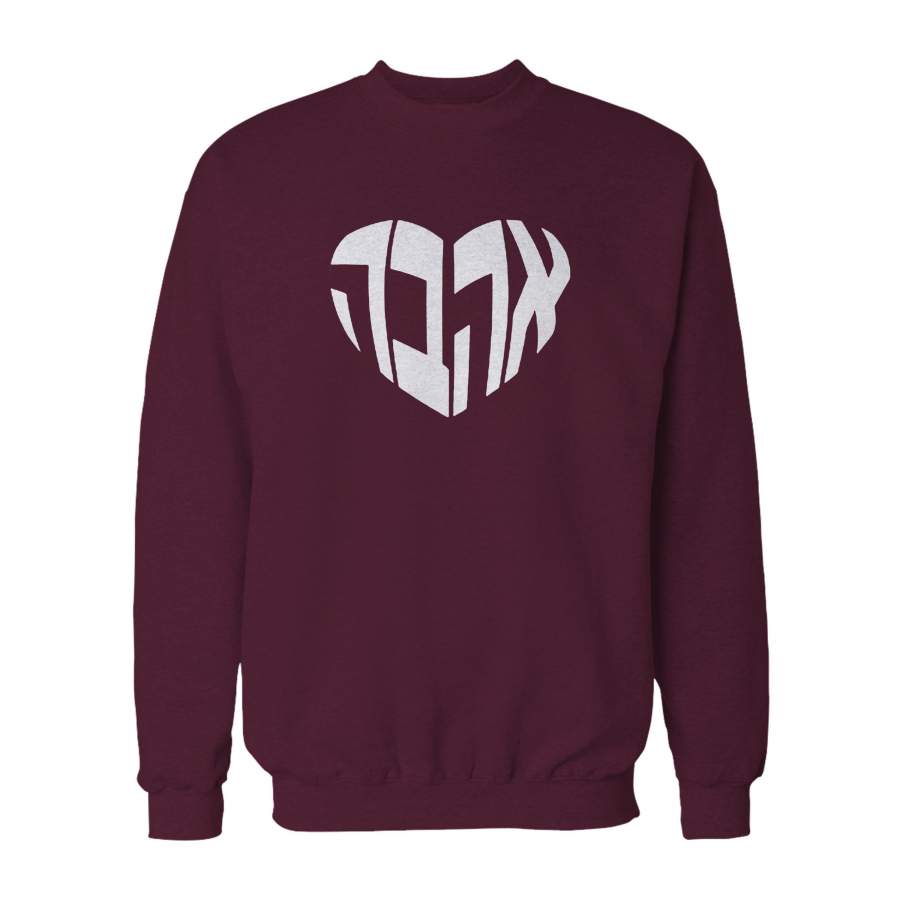 Hebrew Original Design Ahava Love Heart Shape Gift Idea Jewish Lovers Gift Sweatshirt