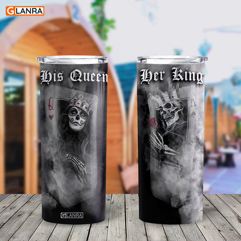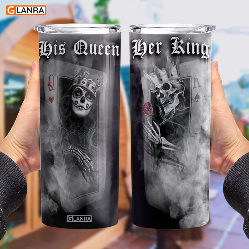 Her King His Queen Skinny Tumbler, Skull Couple Skinny Tumbler, Valentine’S Day Glitter Water Bottle, Couple Stainless Steel Tumbler, Metal, Insulated