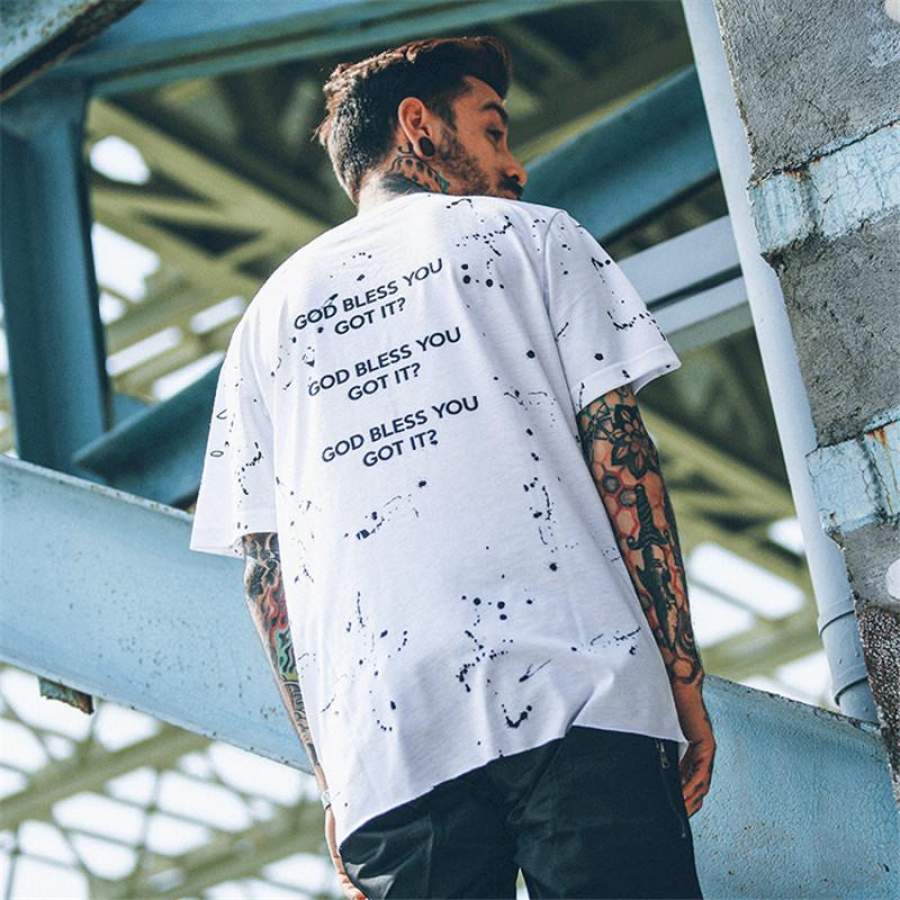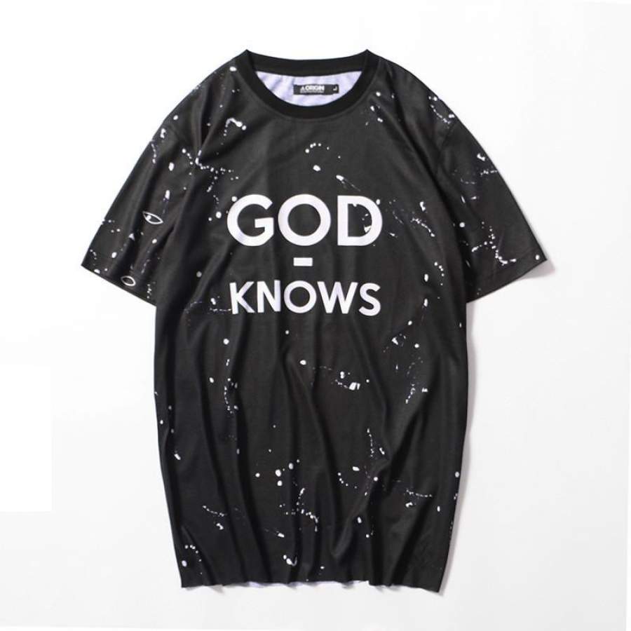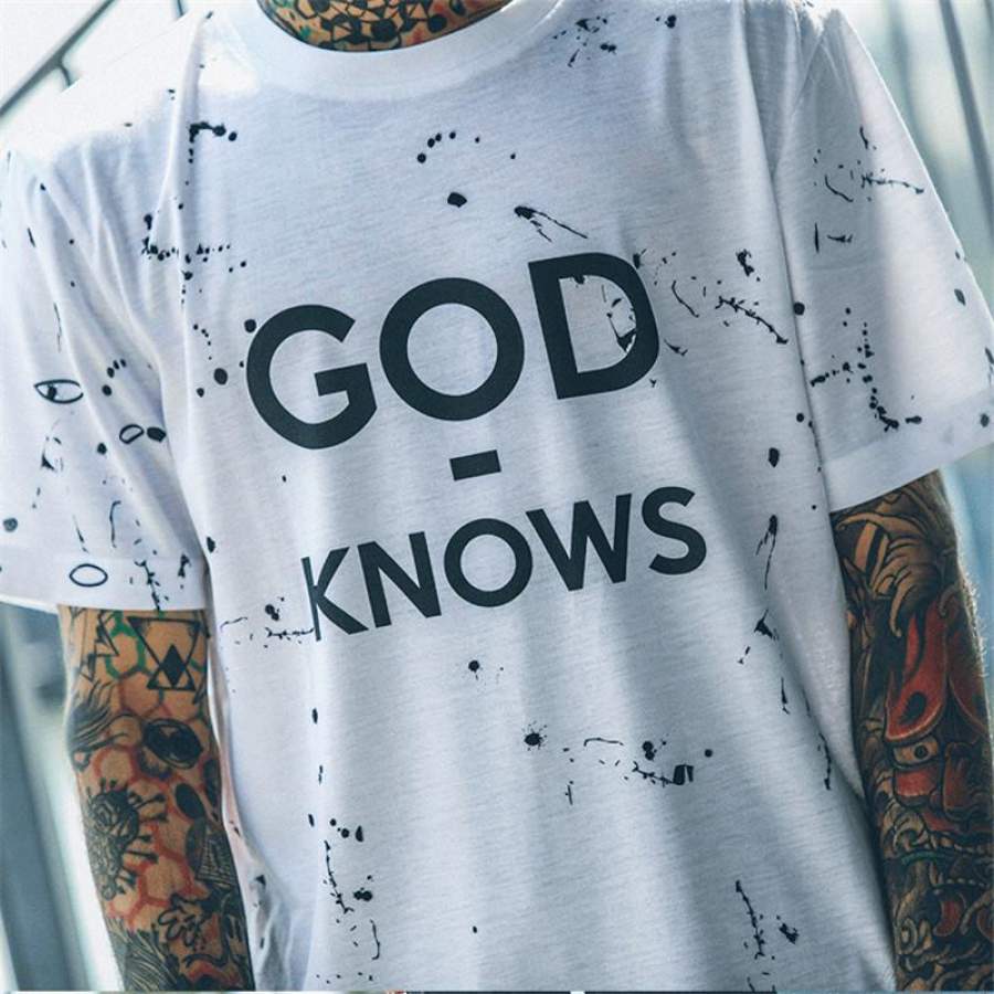 Hip Hop Print Letter “god knows” Paint Spring Summer Casual Fashion Skateboards Street wear T shirt
