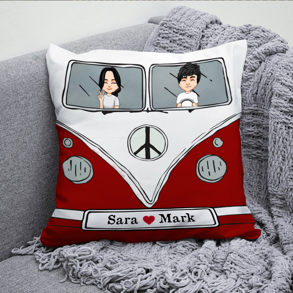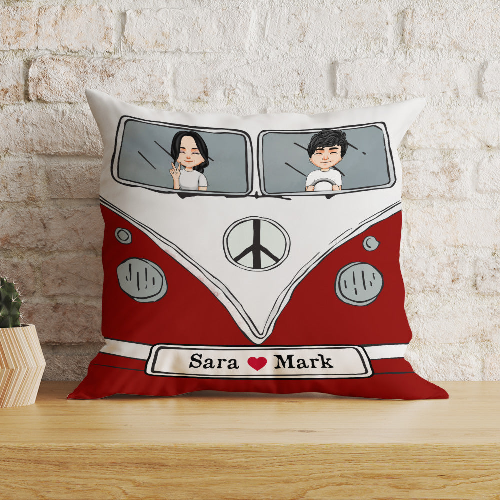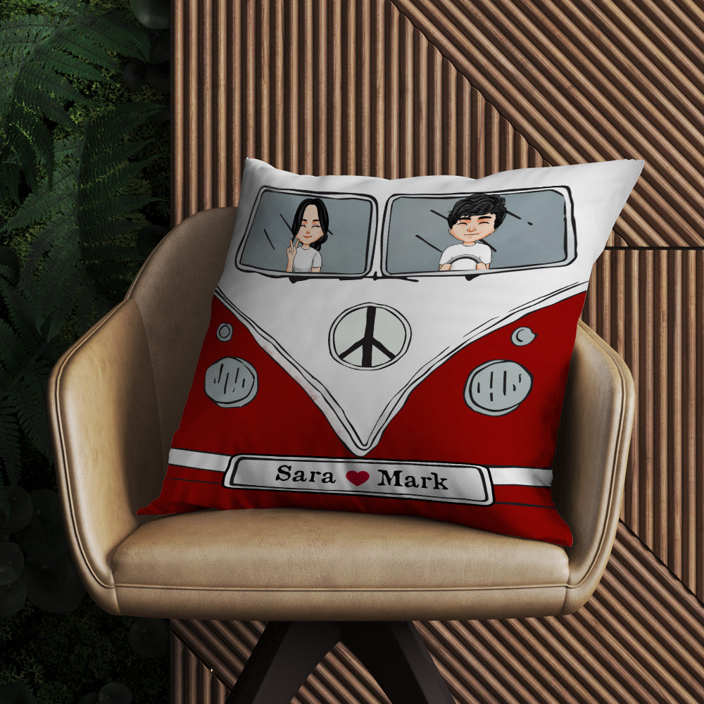 Hippie Couple Custom Pillow Campervan Personalized Gift