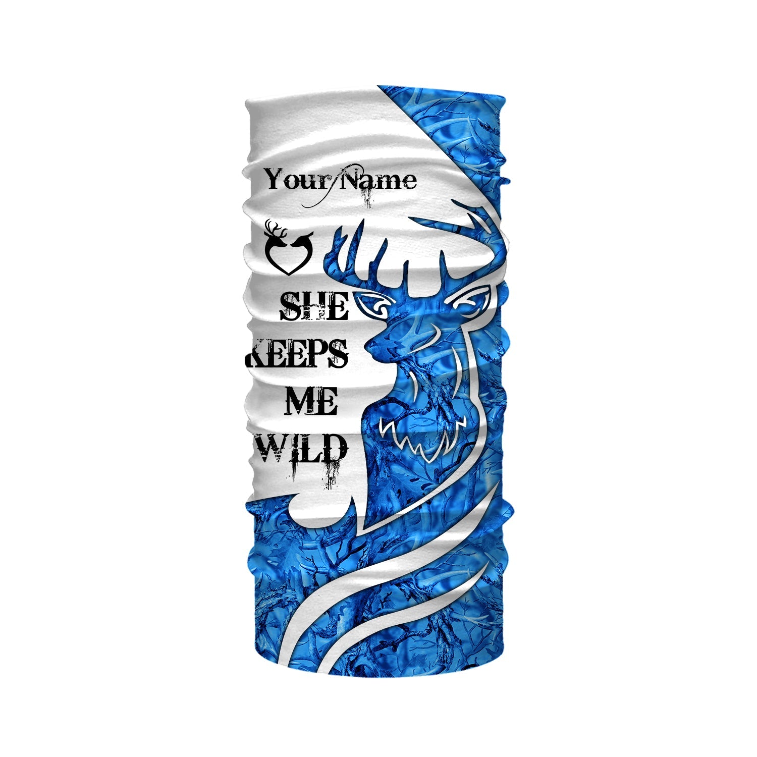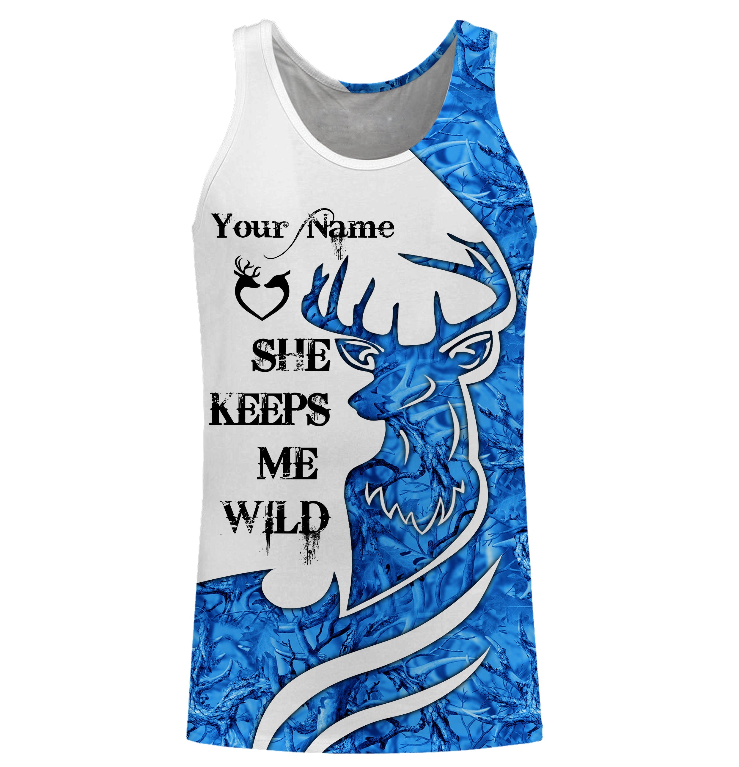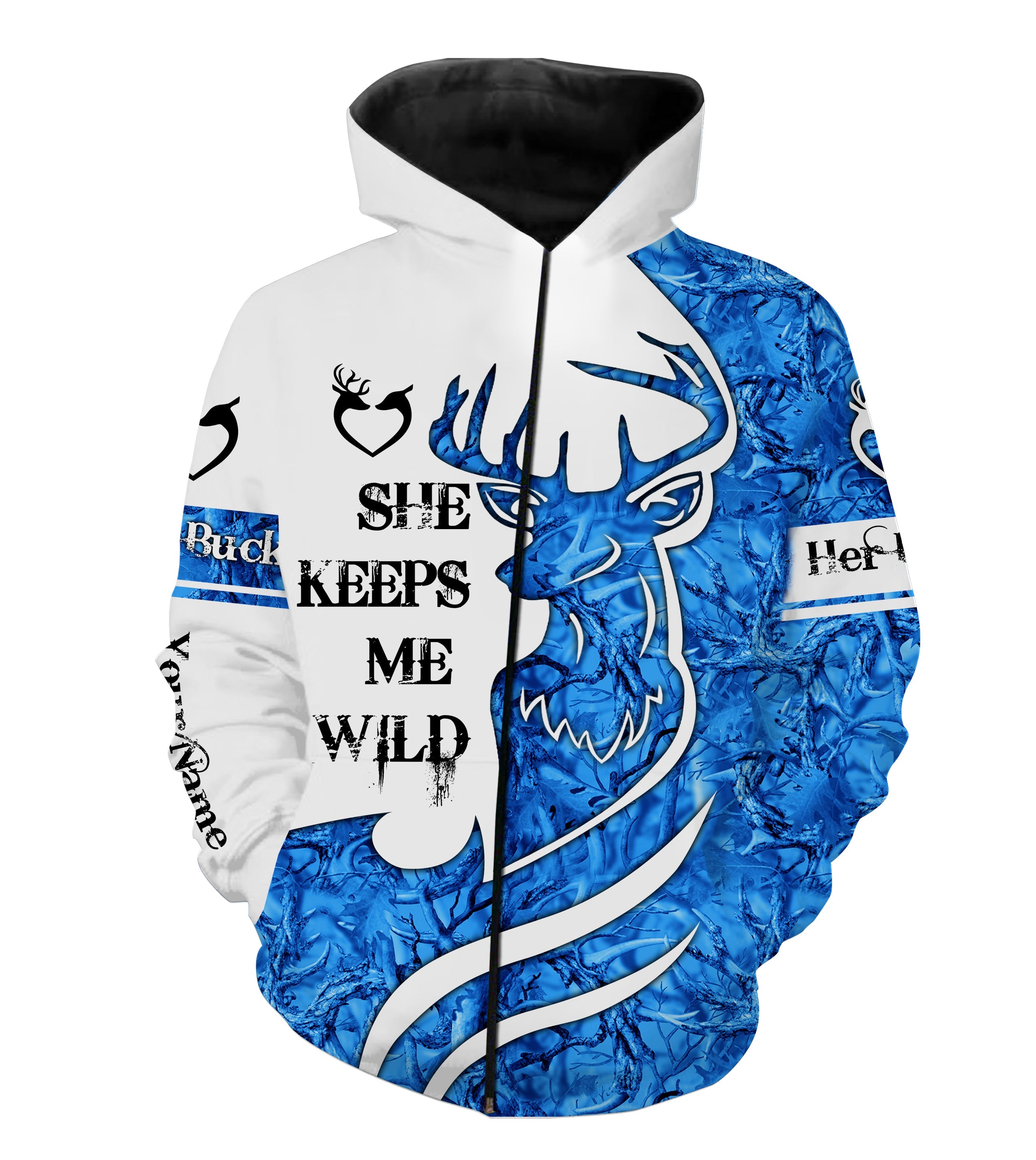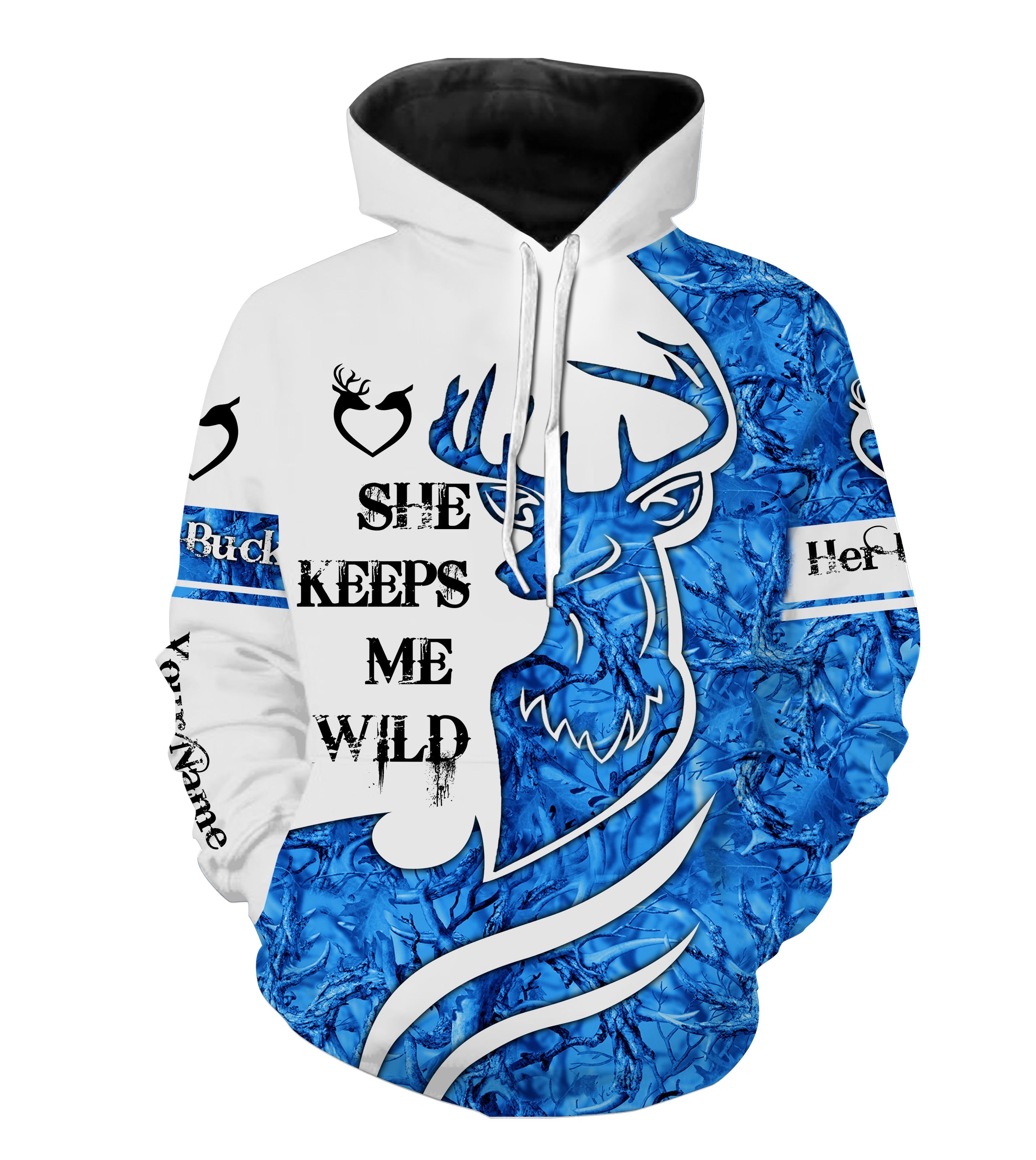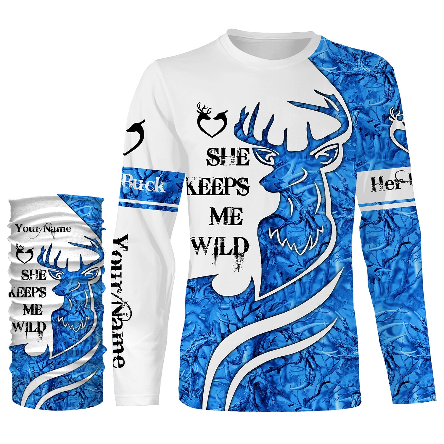 His Doe Her Buck She Keeps Me Wild Blue Camo Men Version Customize Matching Couples 3D All Over Printed Shirts, Valentine Shirts Nqs2782