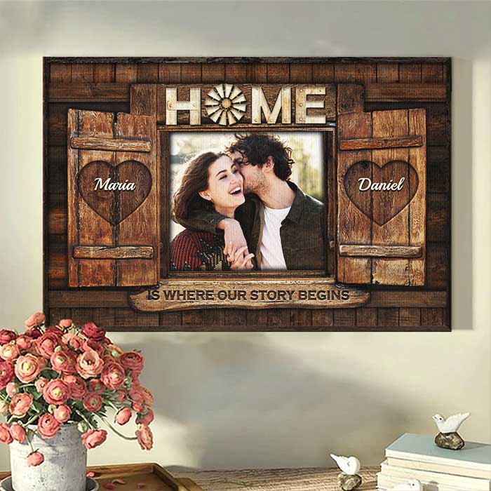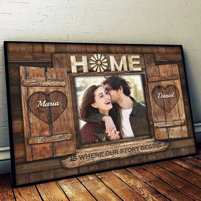 Home Is Where Our Story Begins – Upload Image, Gift For Couples, Husband Wife – Personalized Horizontal Poster