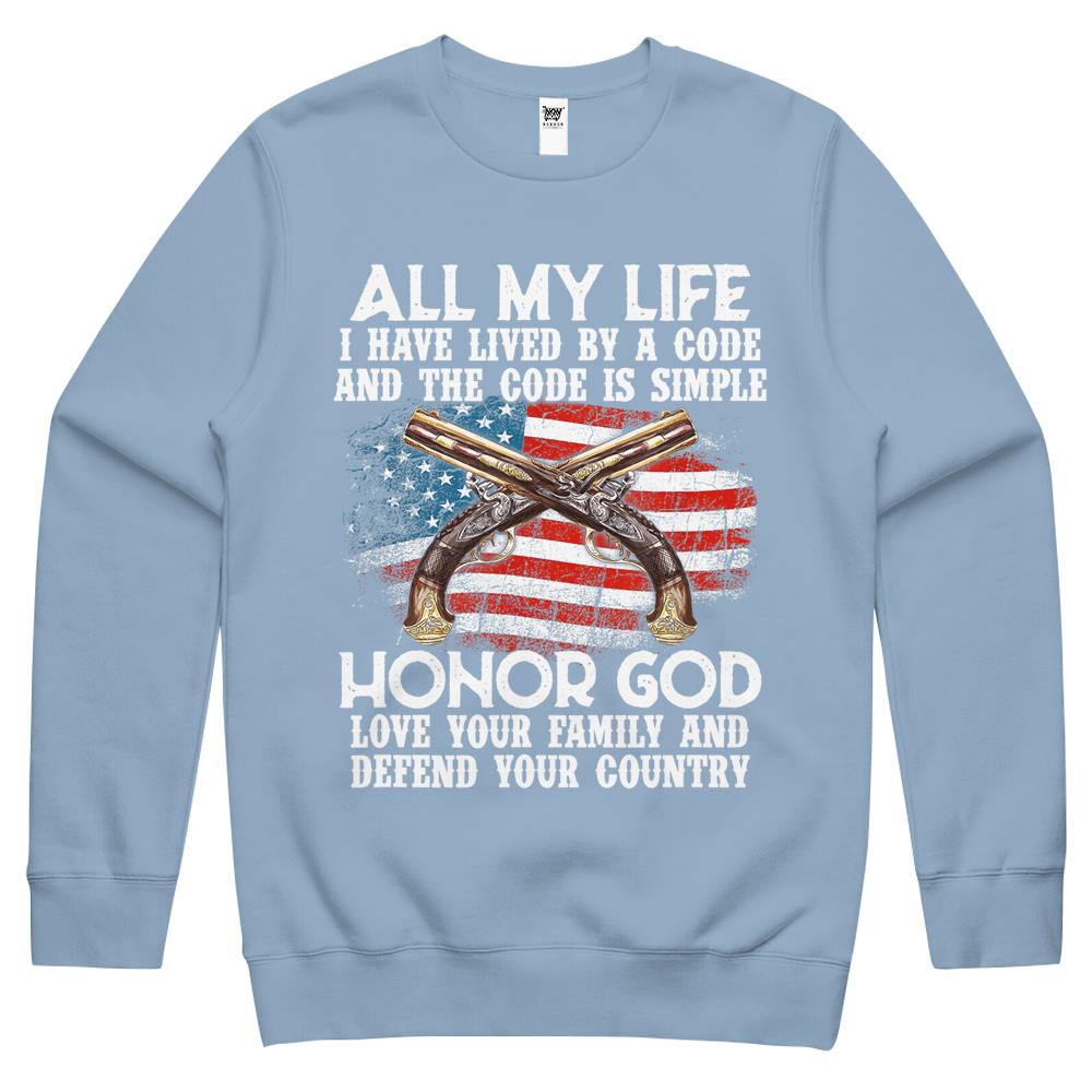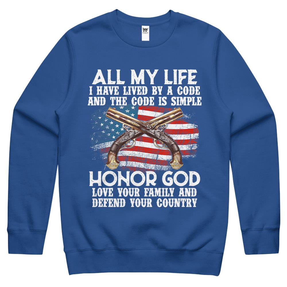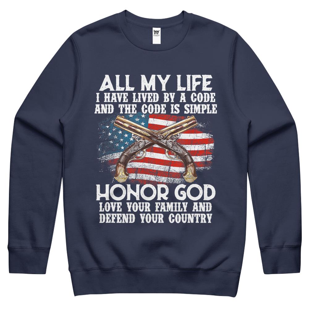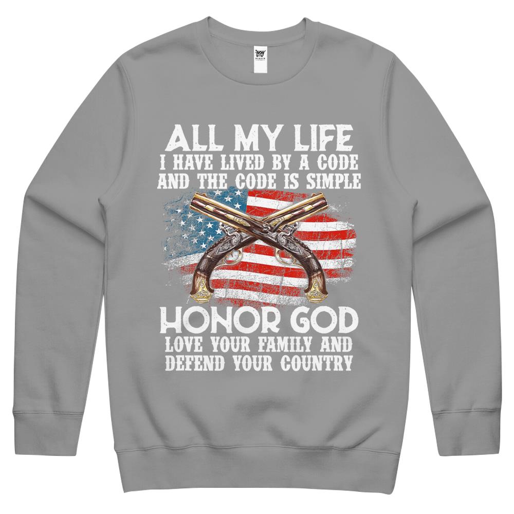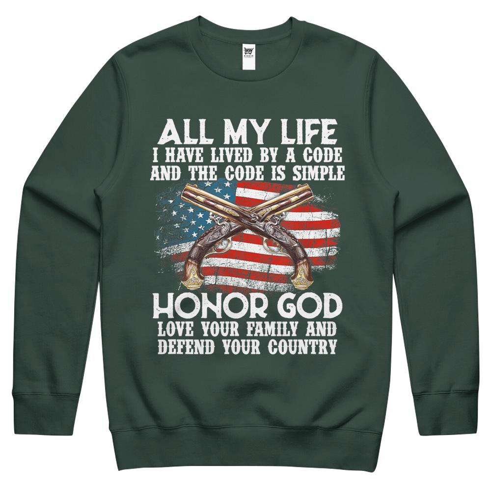 Honor God Love Family Defend Country Military Police Army Crewneck Sweatshirt