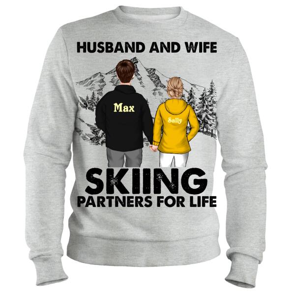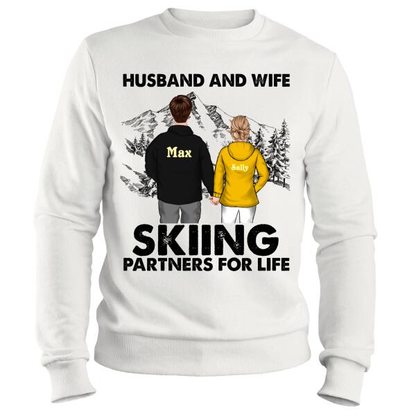 Husband And Wife Skiing Partners For Life – Personalized Shirt – Gift For Skiing Couple – Skiing Lovers