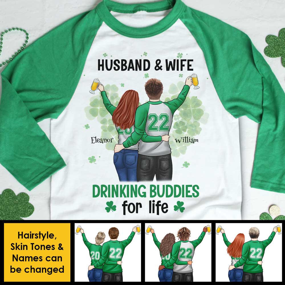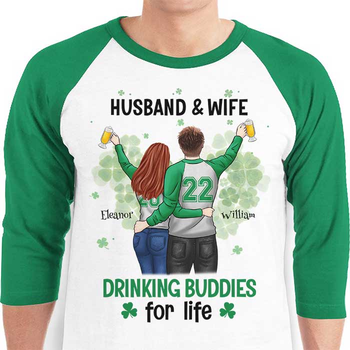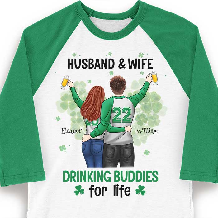 Husband & Wife, Drinking Buddies For Life – Gift For Couples, Husband Wife, Personalized St. Patrick’S Day Unisex Raglan Shirt
