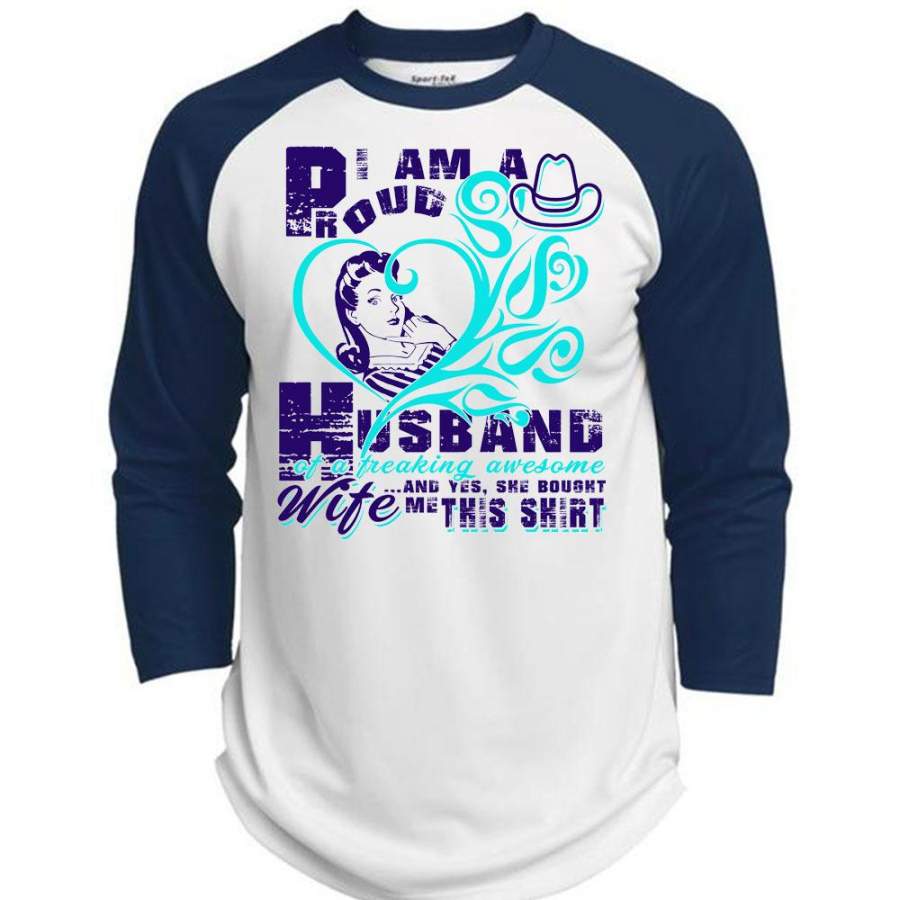 I Am A Proud Husband Of A Freaking Awesome Wife T Shirt, I Love Husband T Shirt, Awesome T-Shirts (Polyester Game Baseball Jersey)