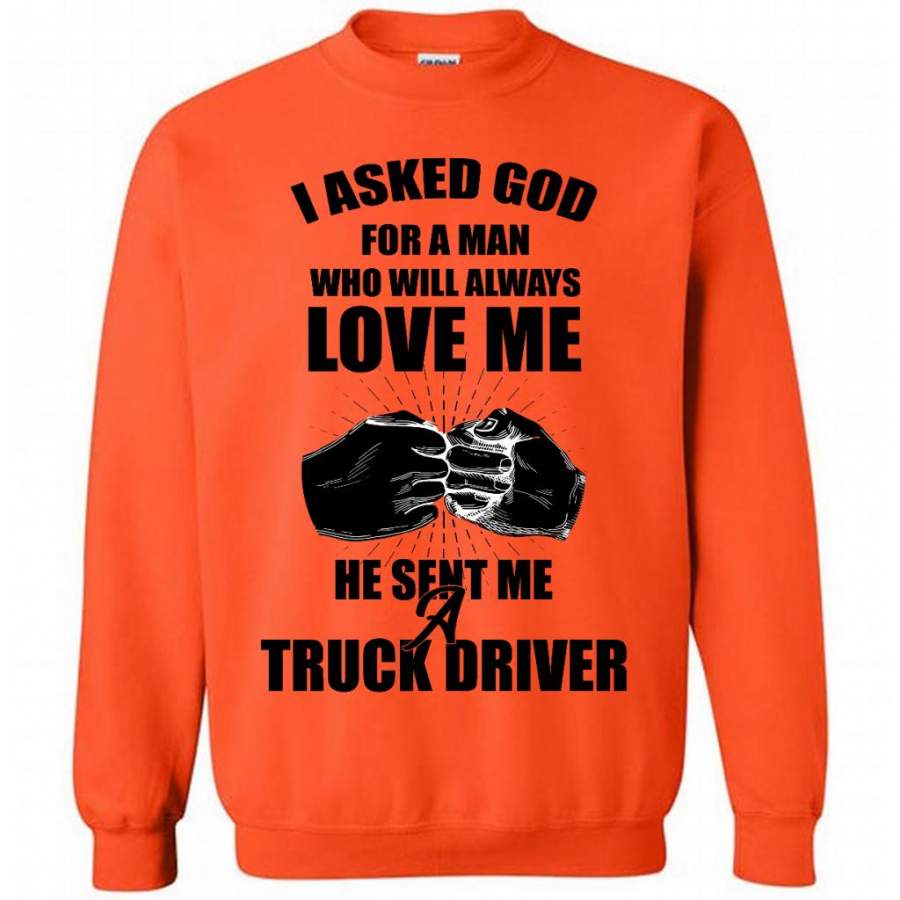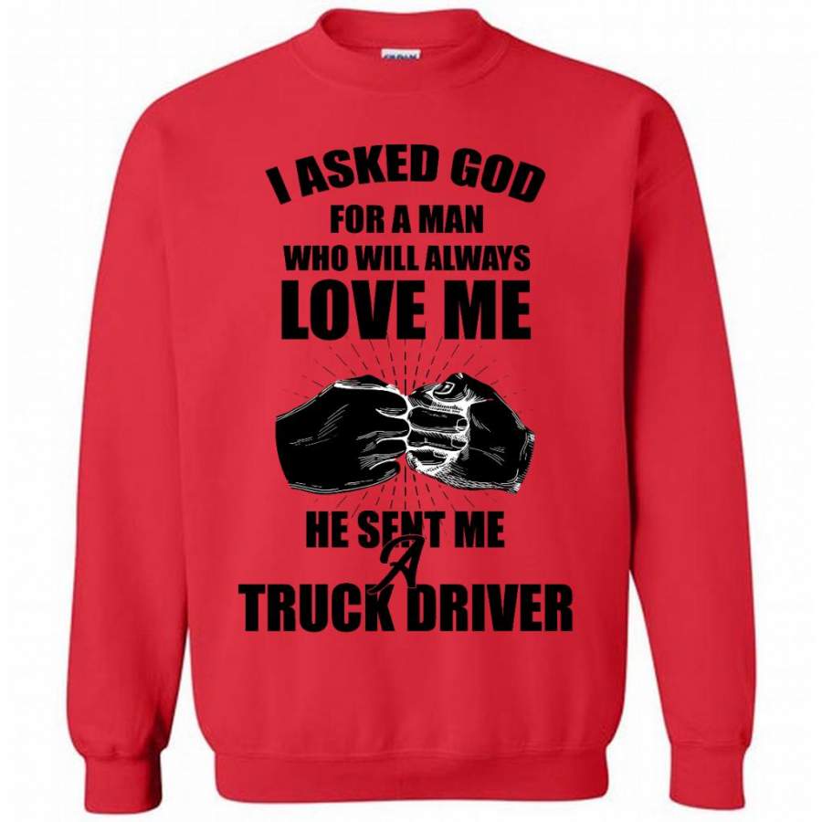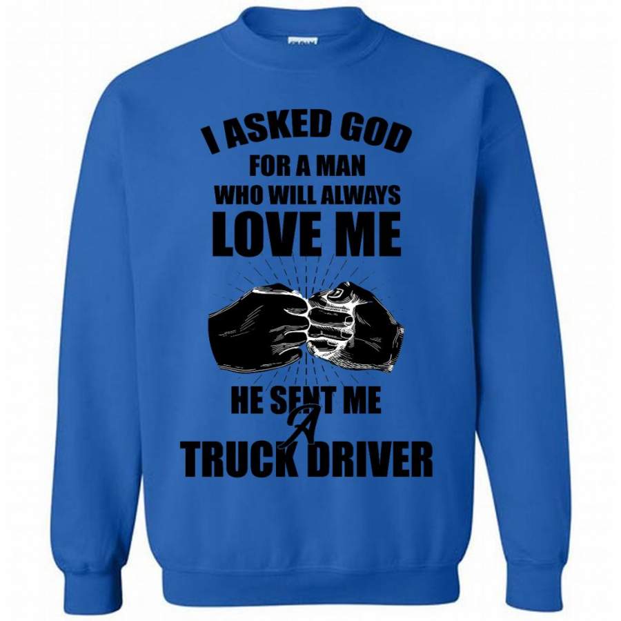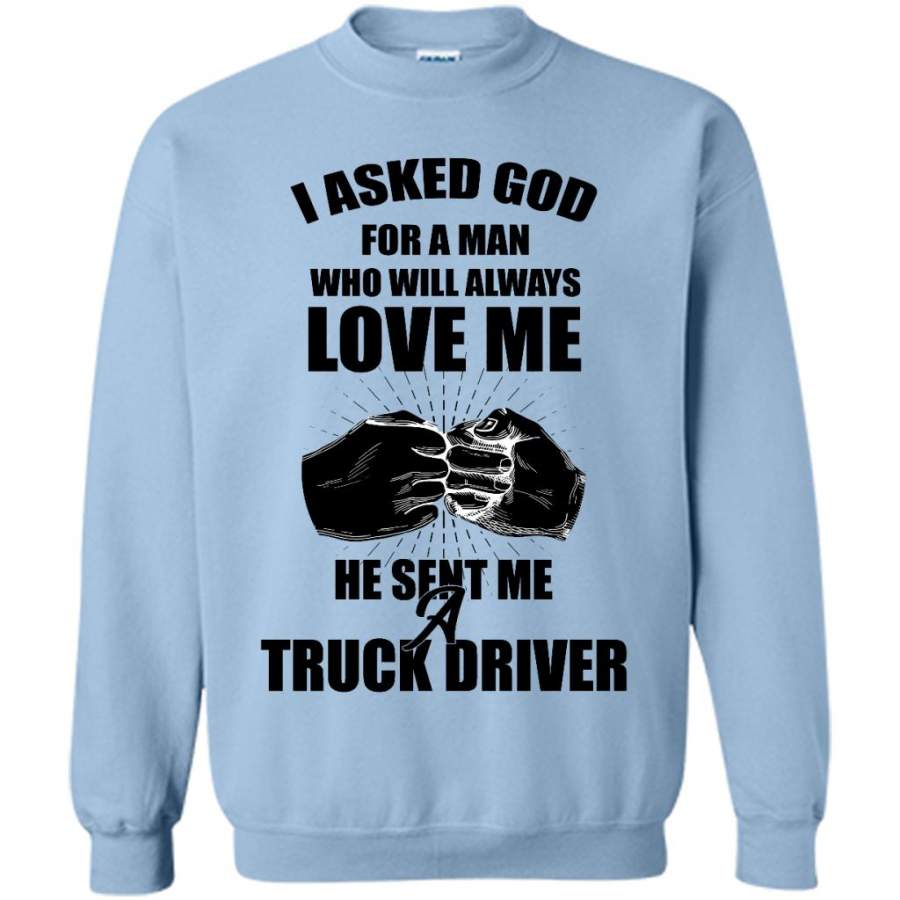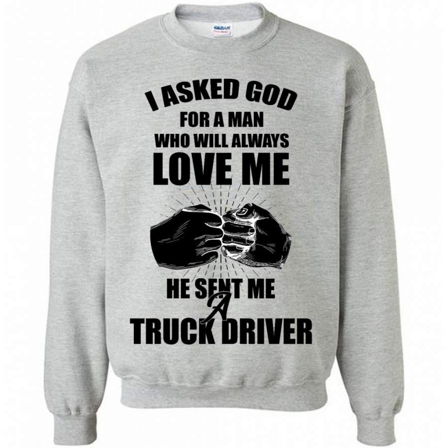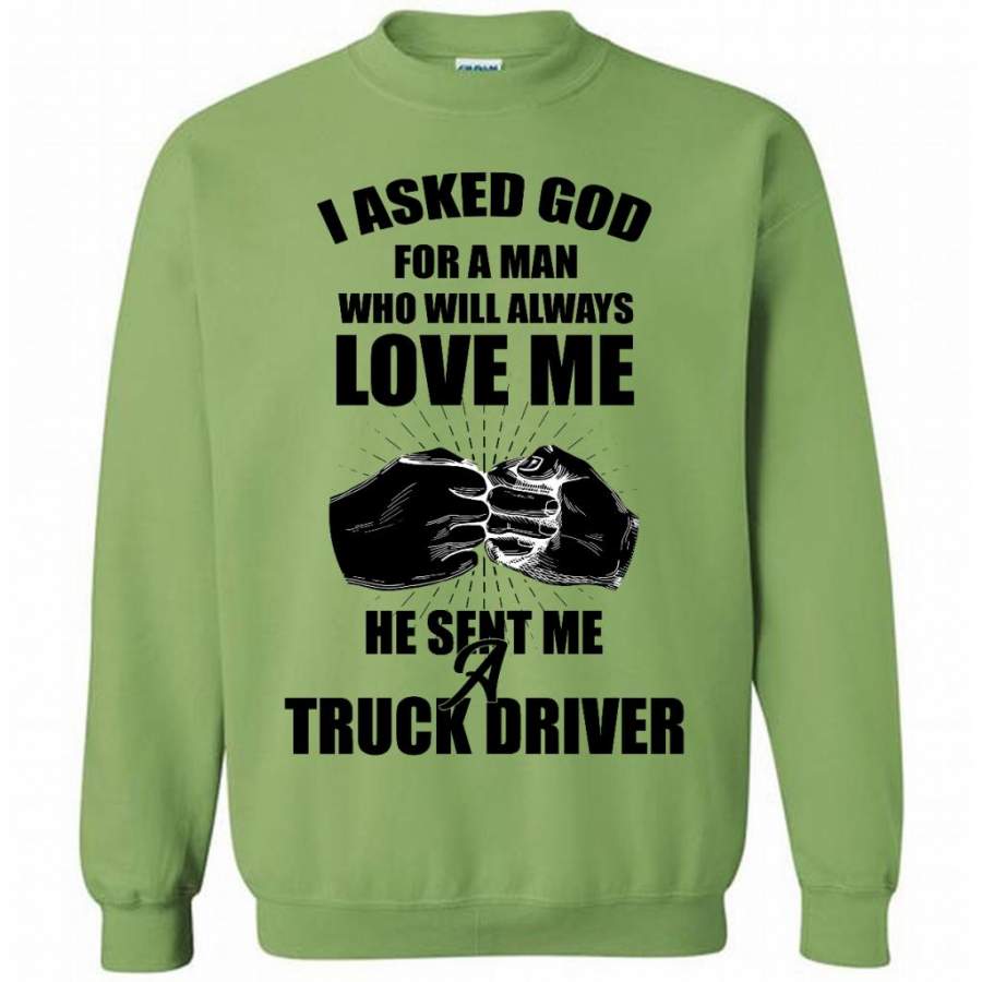 I Asked God For A Man Who Will Always Love Me He Sent Me A Truck Driver (w) – Gildan Crewneck Sweatshirt