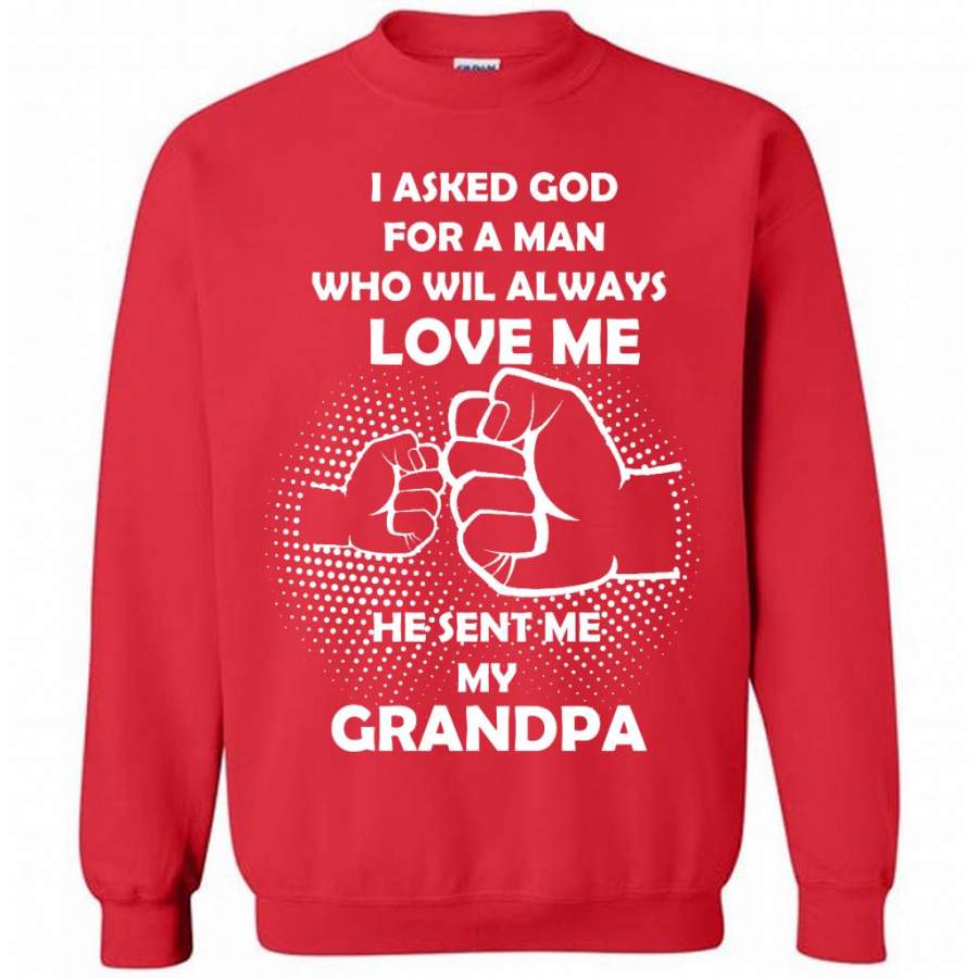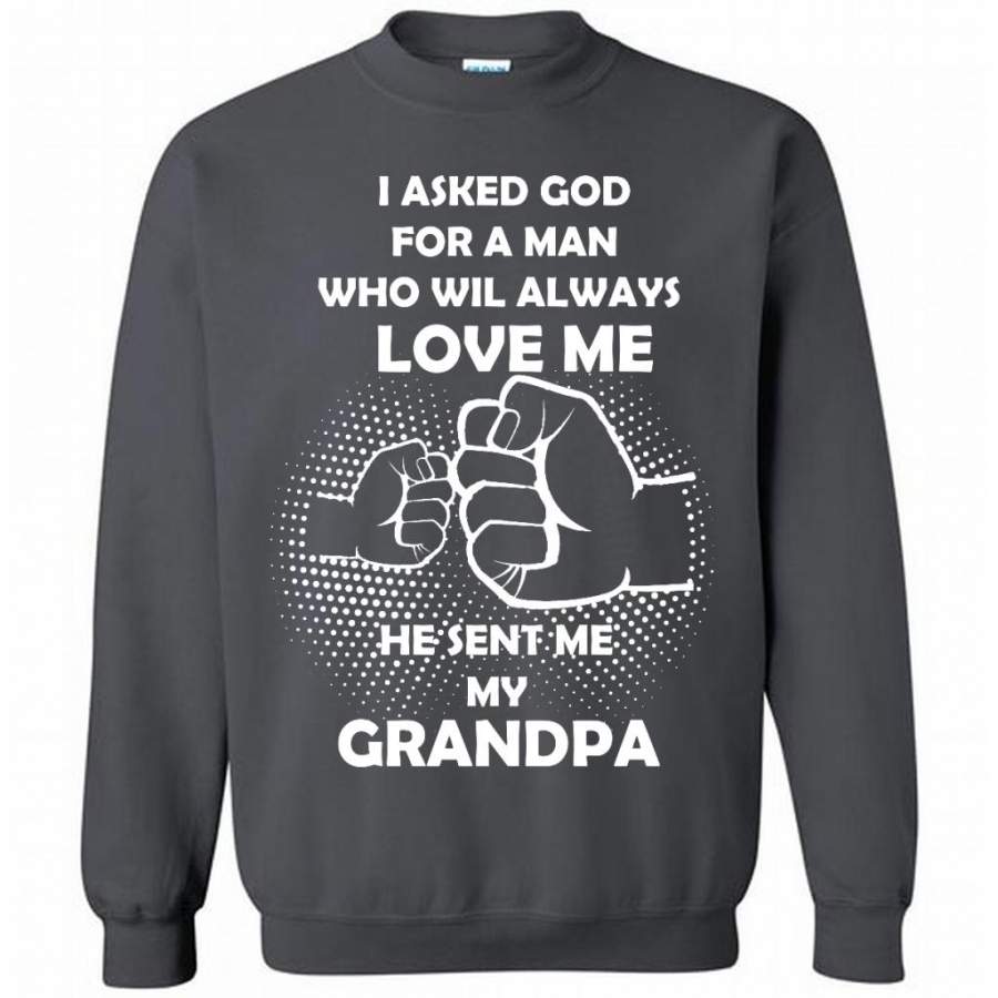 I Asked God For A Man Who Will Always Love Me He Sent Me My Grandpa – Gildan Crewneck Sweatshirt