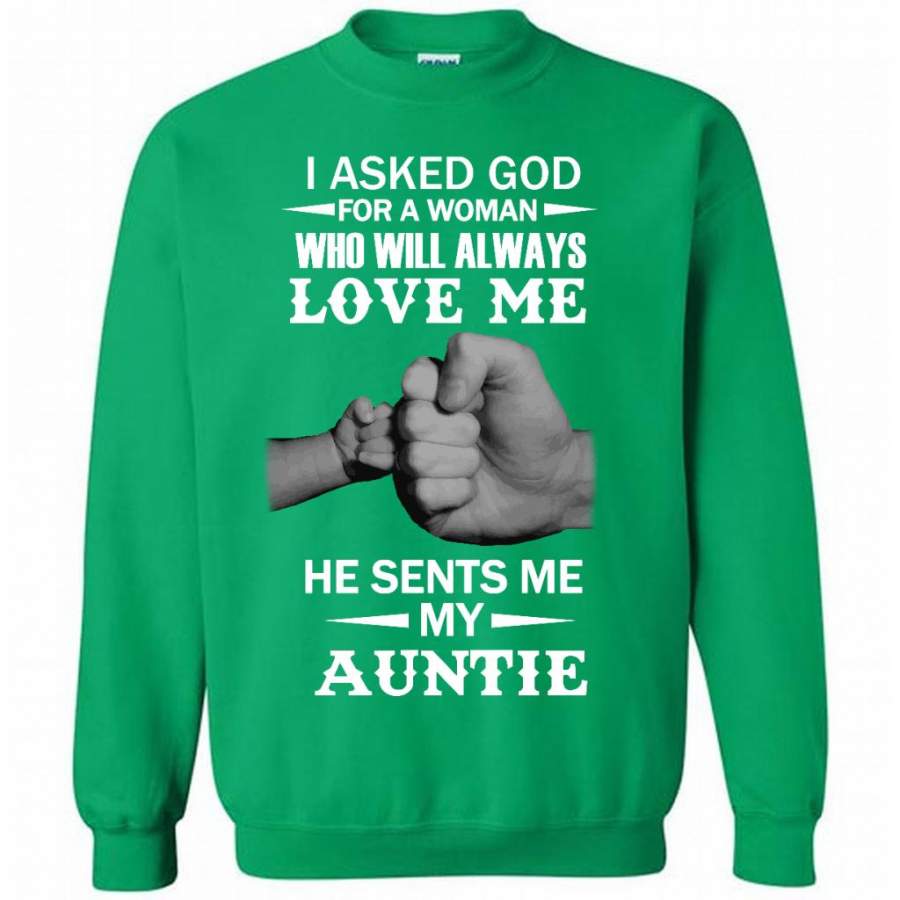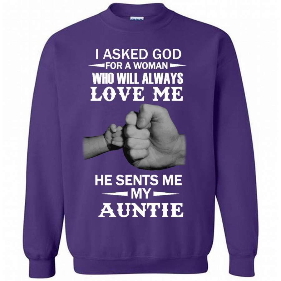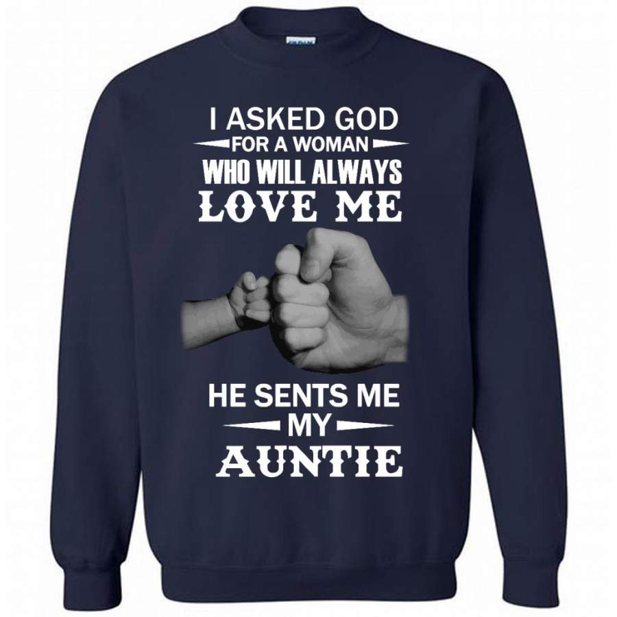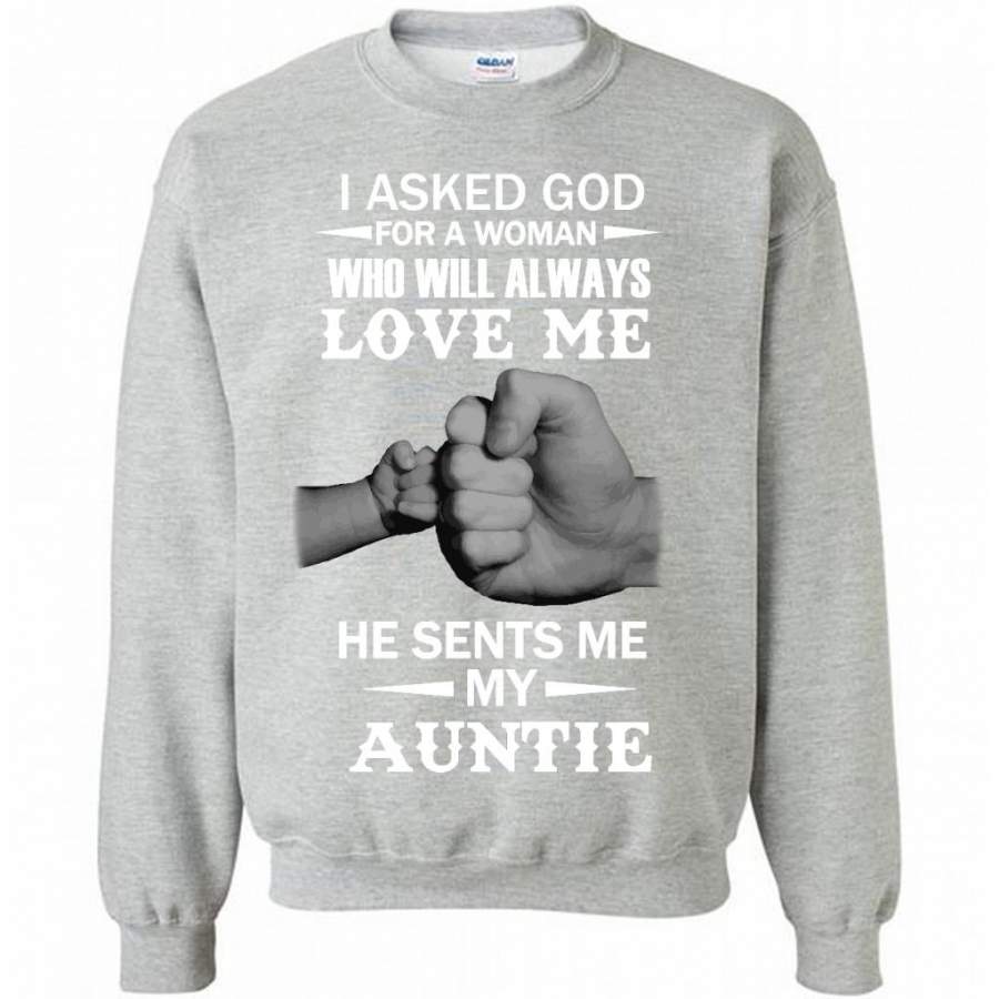 I Asked God For A Woman Who Will Always Love Me He Sent Me My Auntie – Gildan Crewneck Sweatshirt