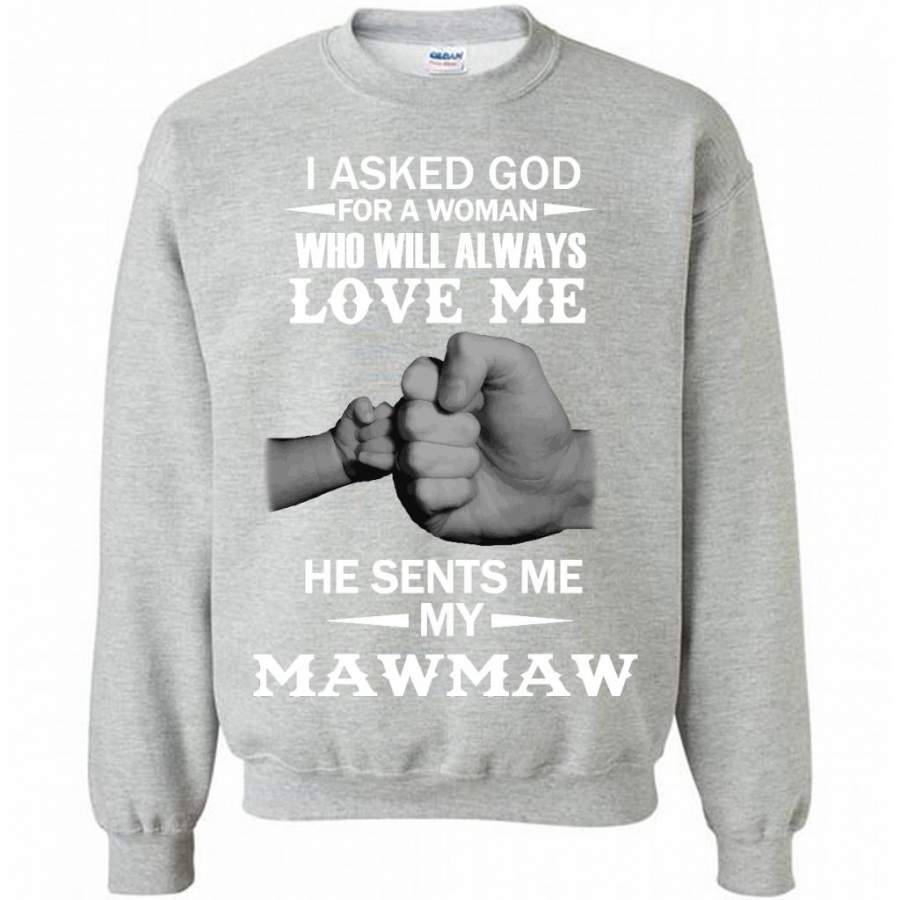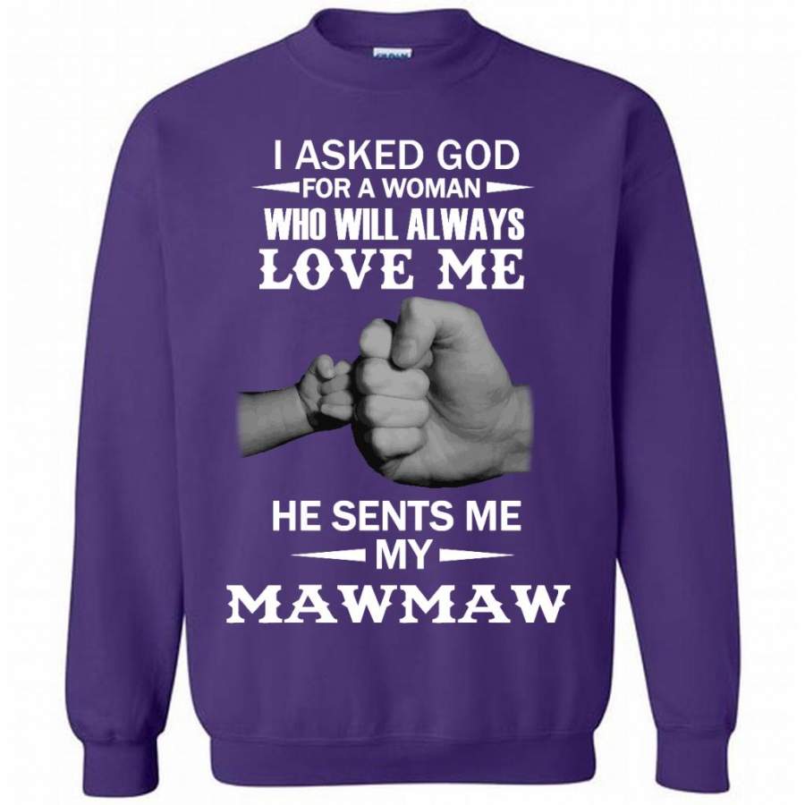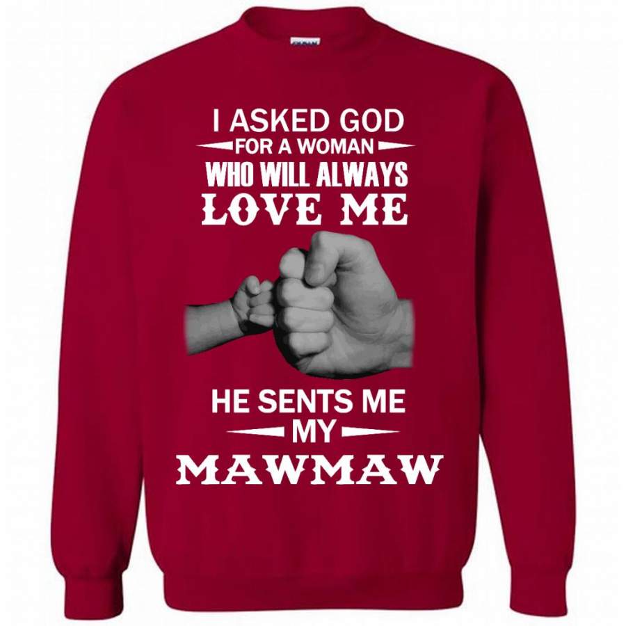 I Asked God For A Woman Who Will Always Love Me He Sent Me My MawMaw – Gildan Crewneck Sweatshirt