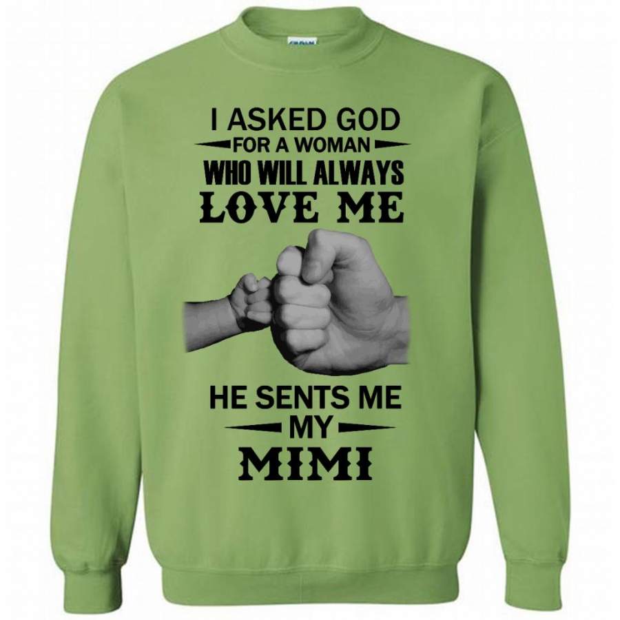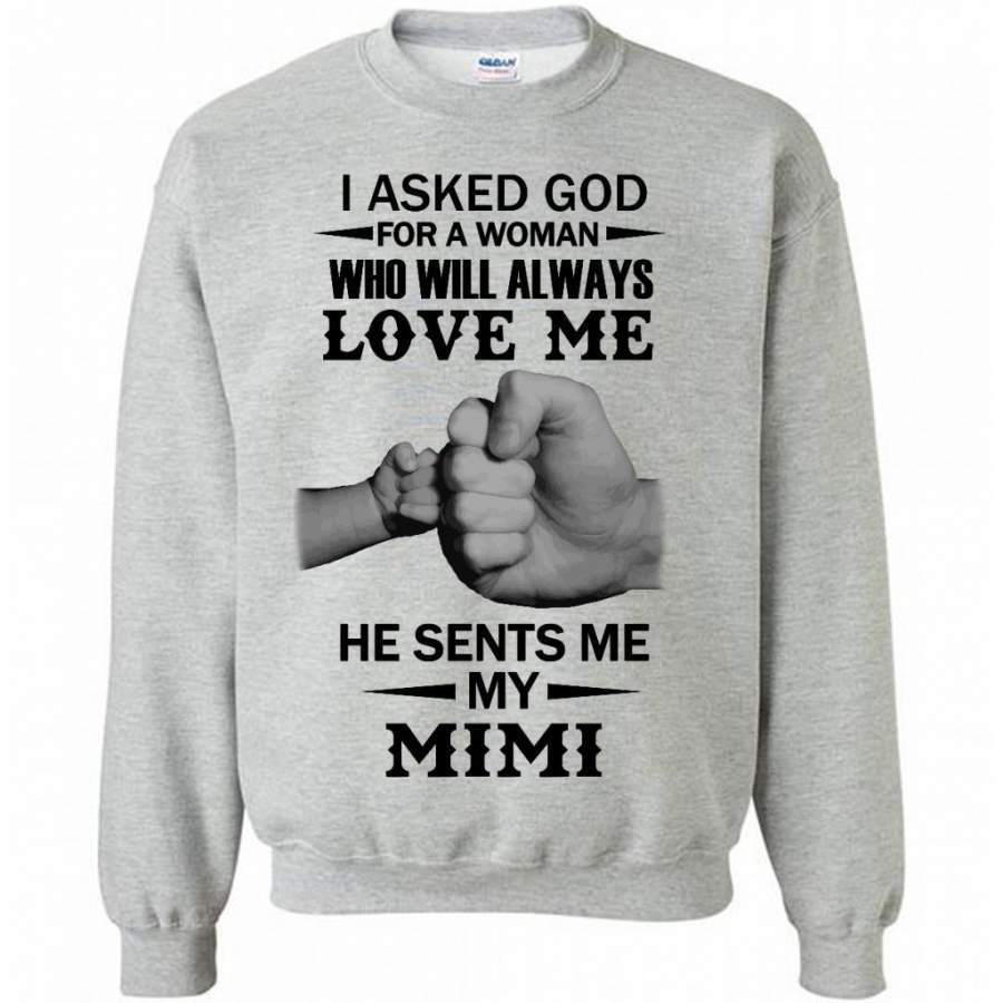 I Asked God For A Woman Who Will Always Love Me He Sent Me My Mimi (w) – Gildan Crewneck Sweatshirt