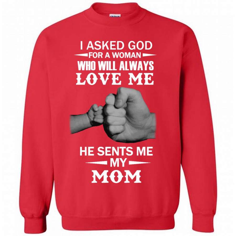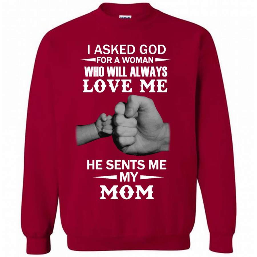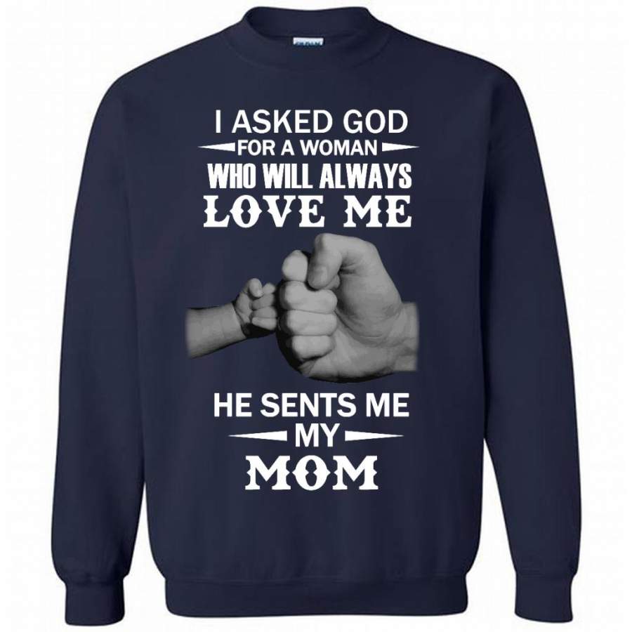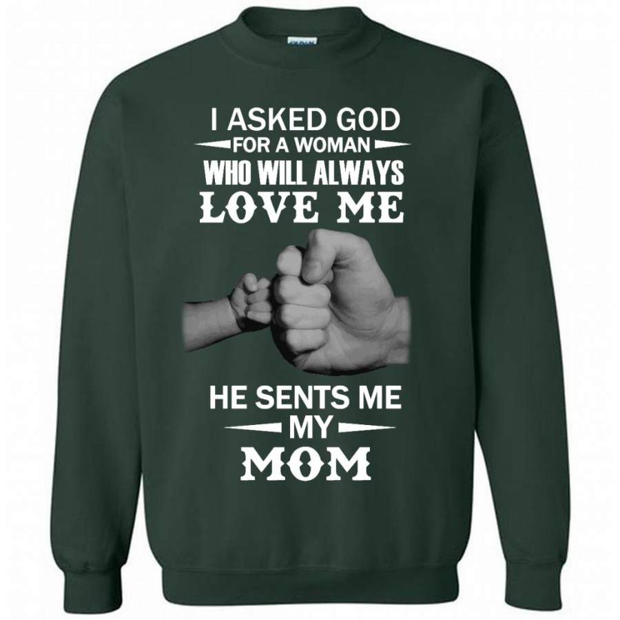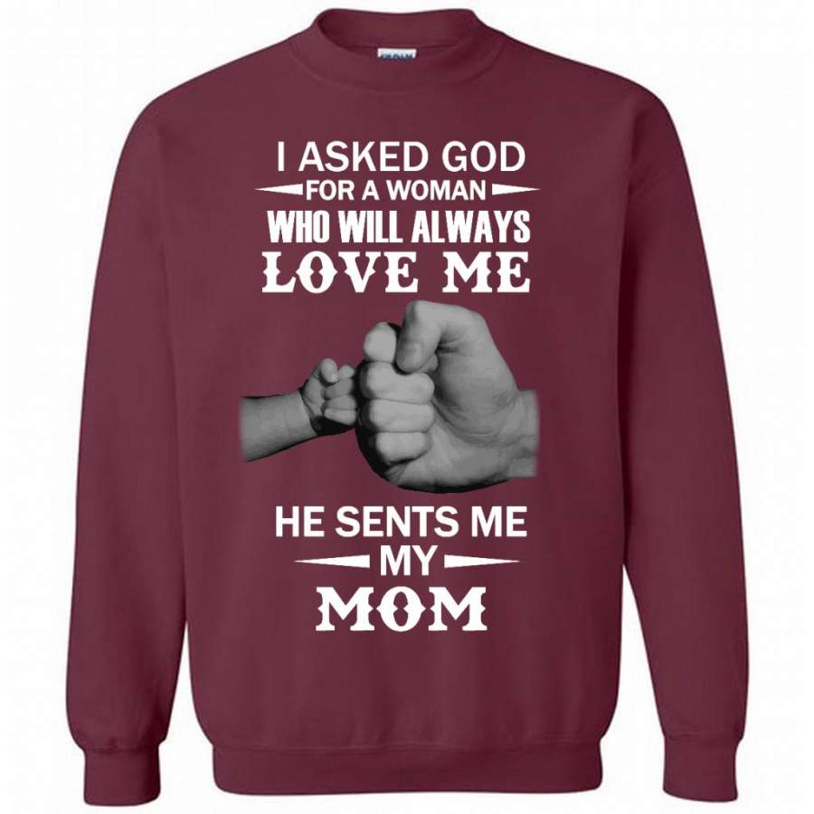 I Asked God For A Woman Who Will Always Love Me He Sent Me My Mom – Gildan Crewneck Sweatshirt