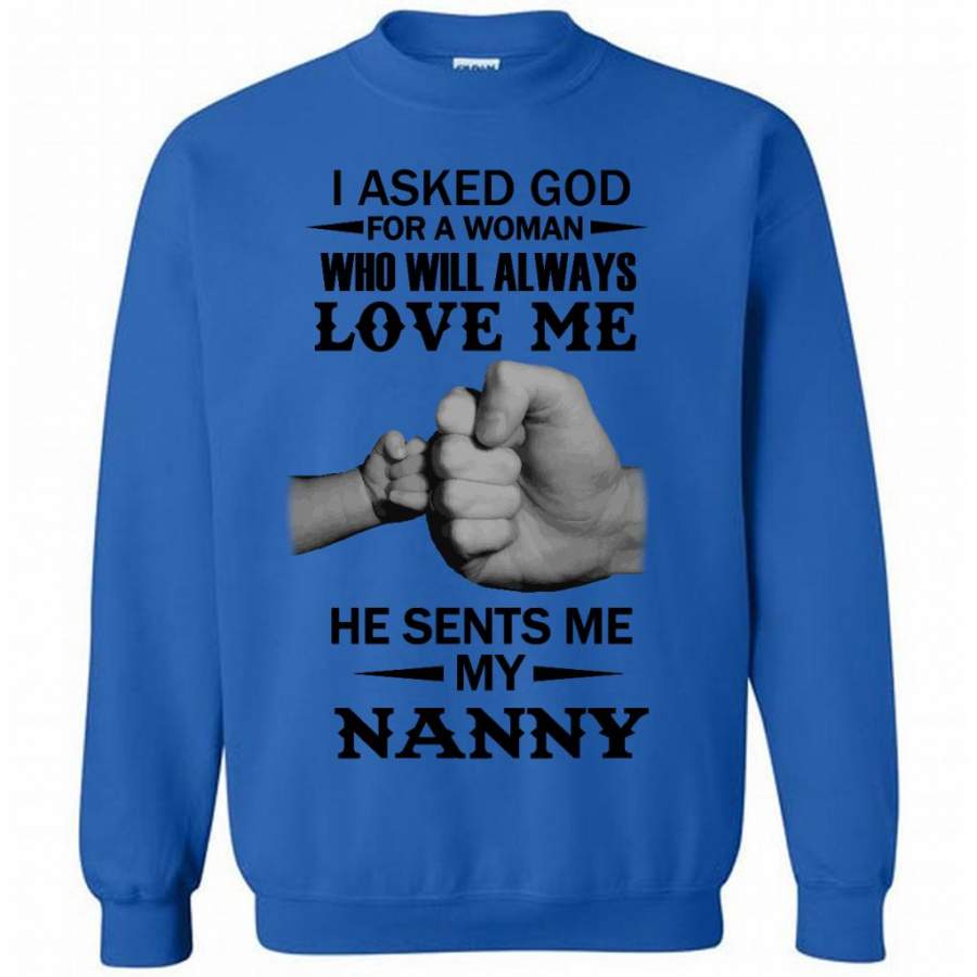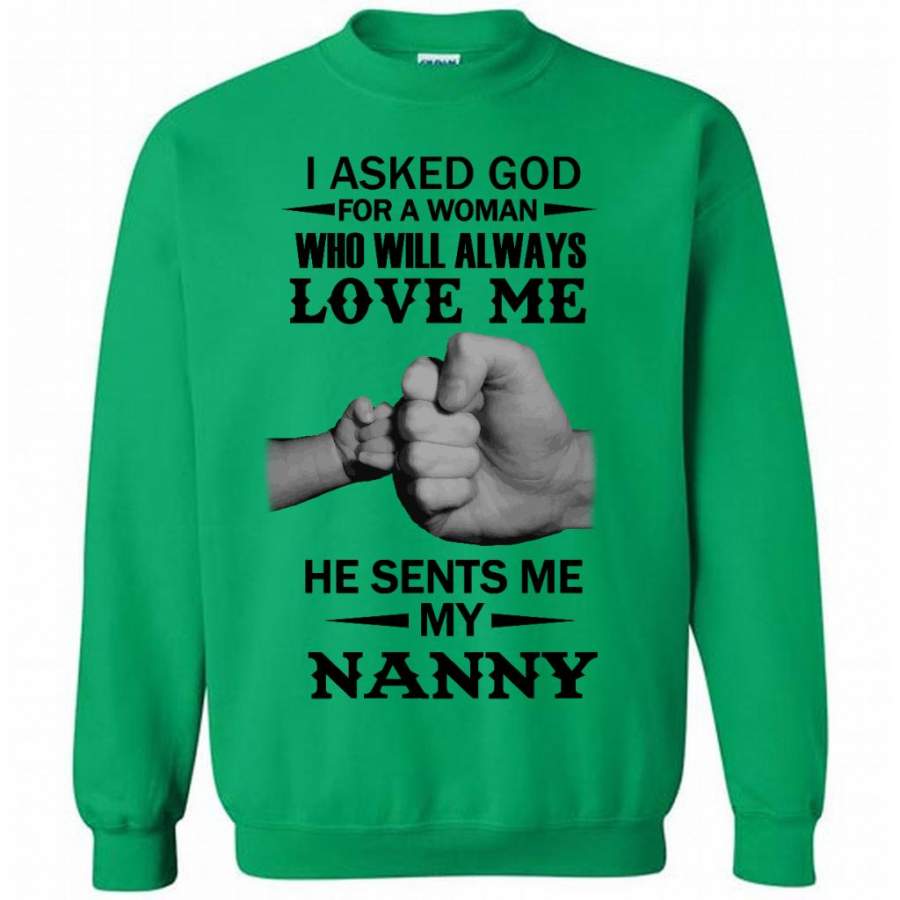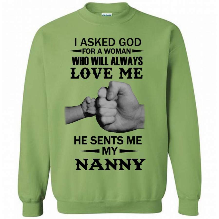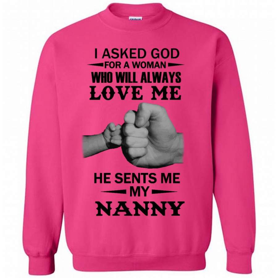 I Asked God For A Woman Who Will Always Love Me He Sent Me My Nanny (W) – Gildan Crewneck Sweatshirt