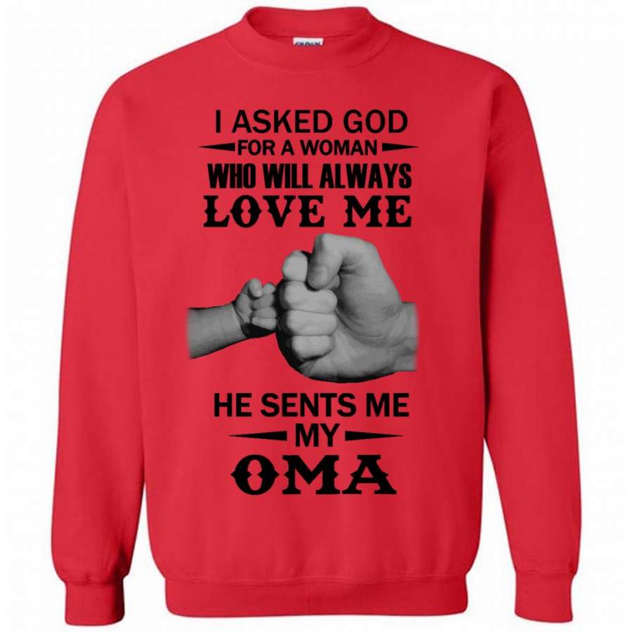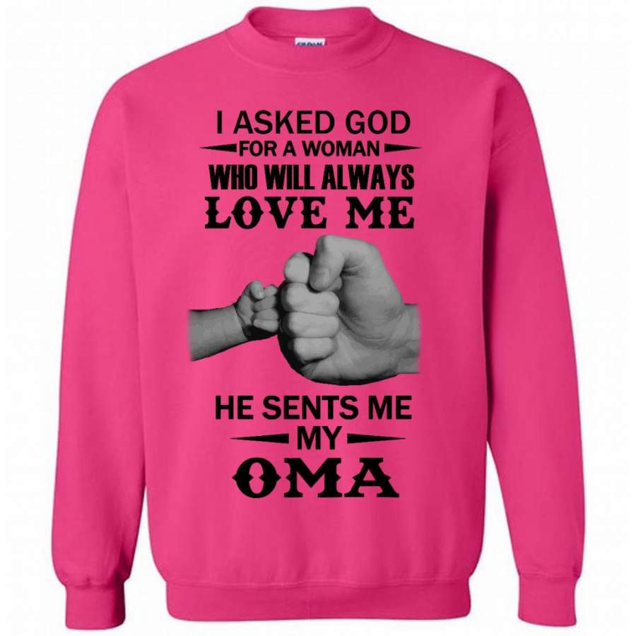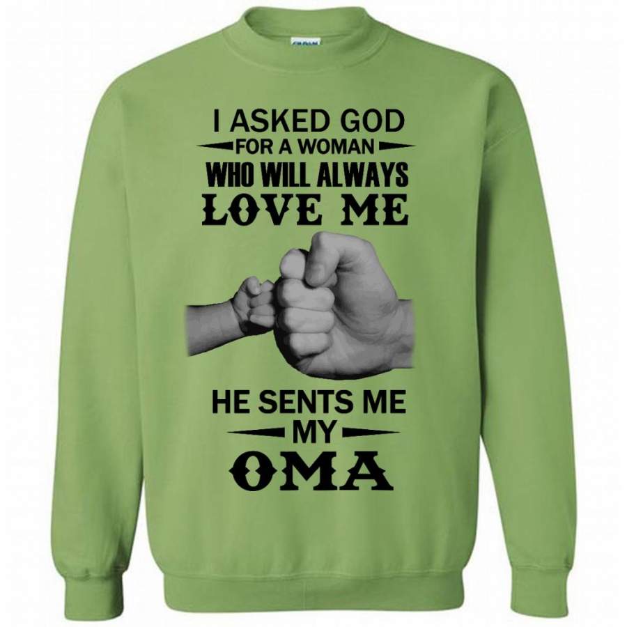 I Asked God For A Woman Who Will Always Love Me He Sent Me My Oma (w) – Gildan Crewneck Sweatshirt