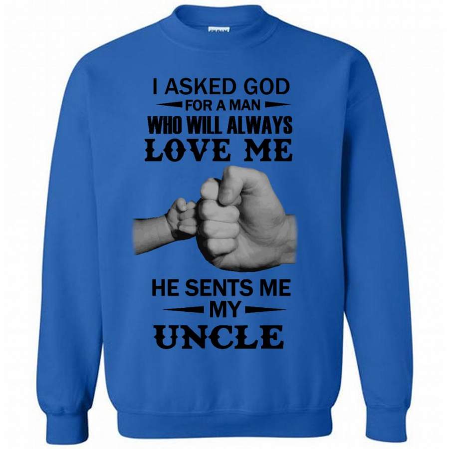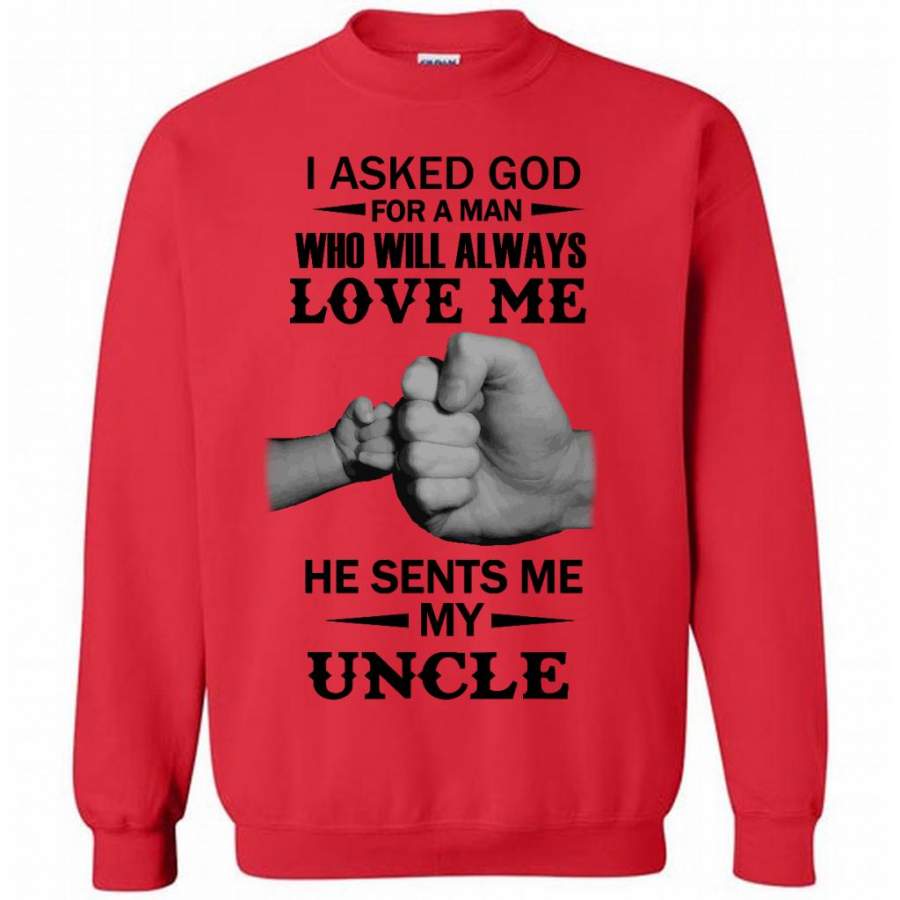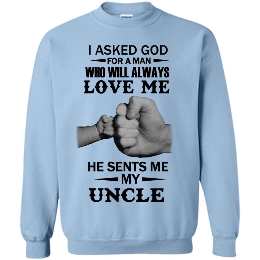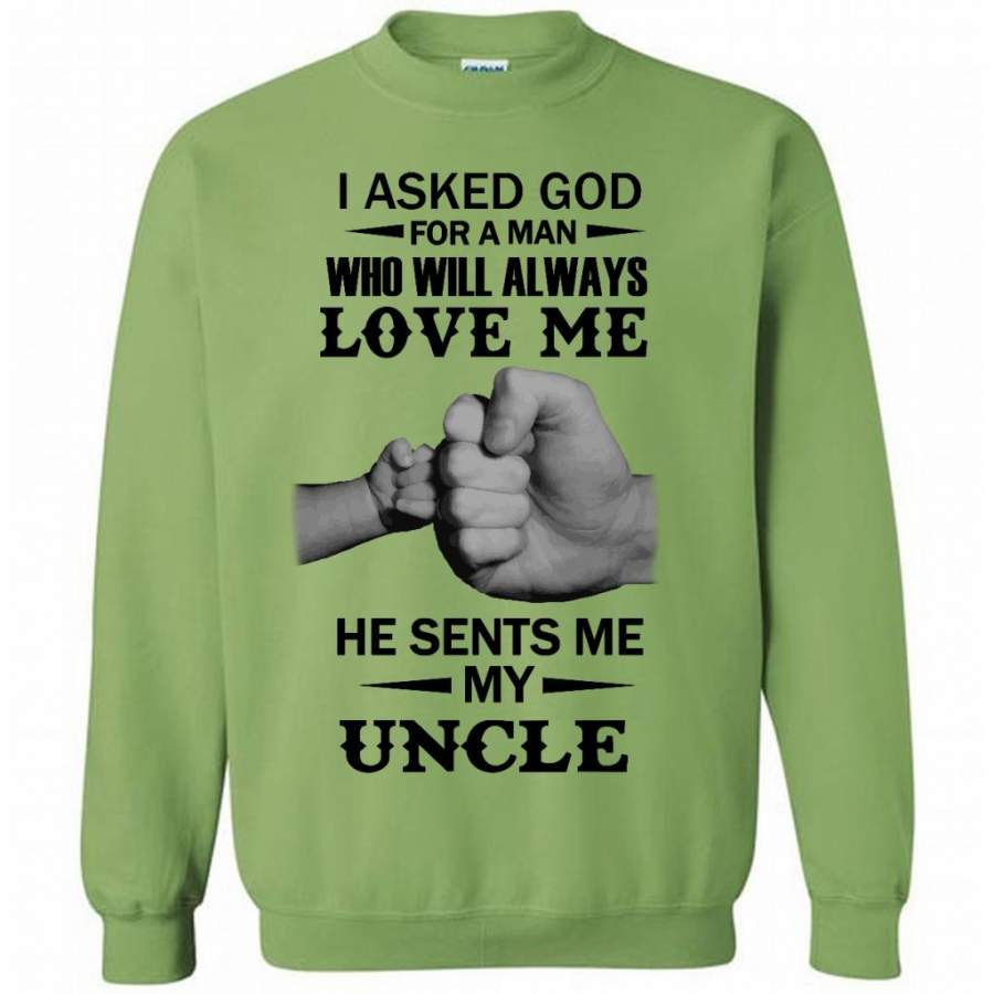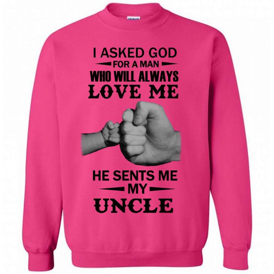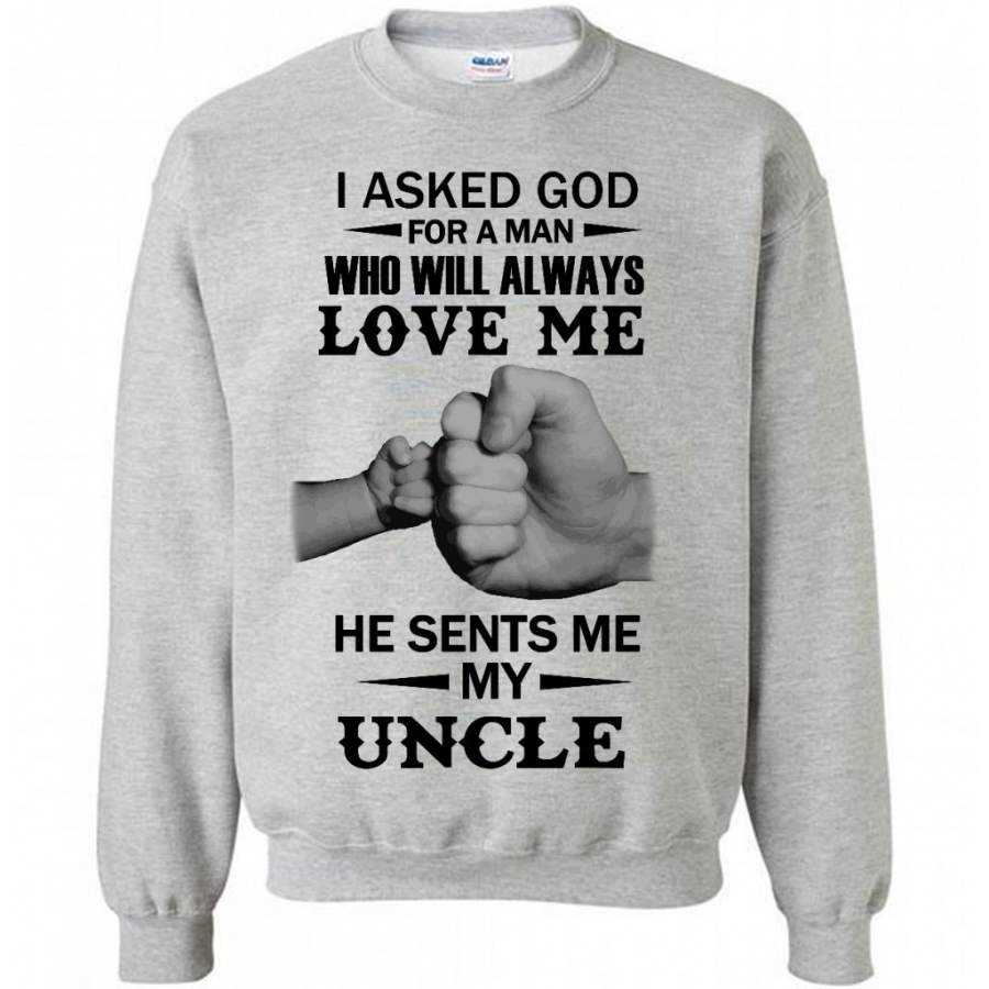 I Asked God For A Woman Who Will Always Love Me He Sent Me My Uncle (w) – Gildan Crewneck Sweatshirt