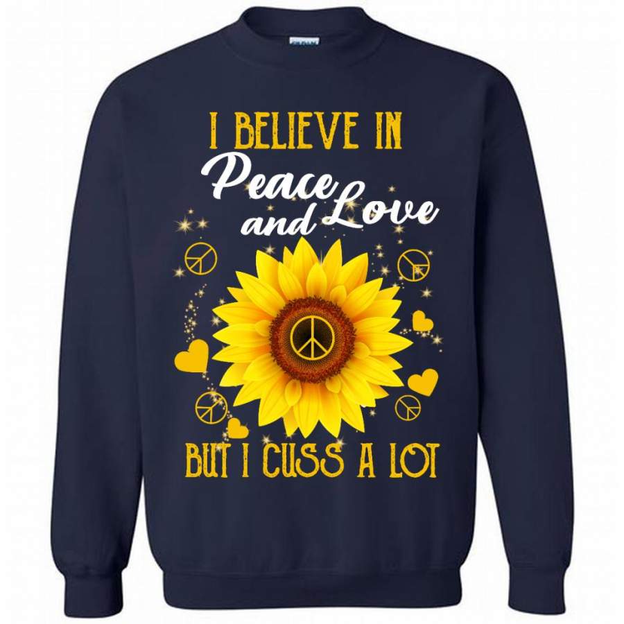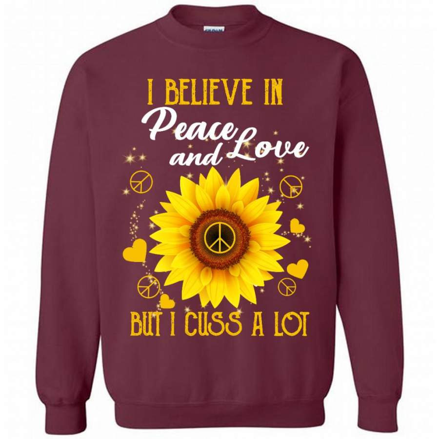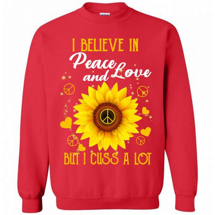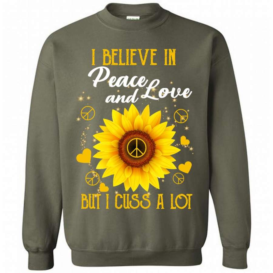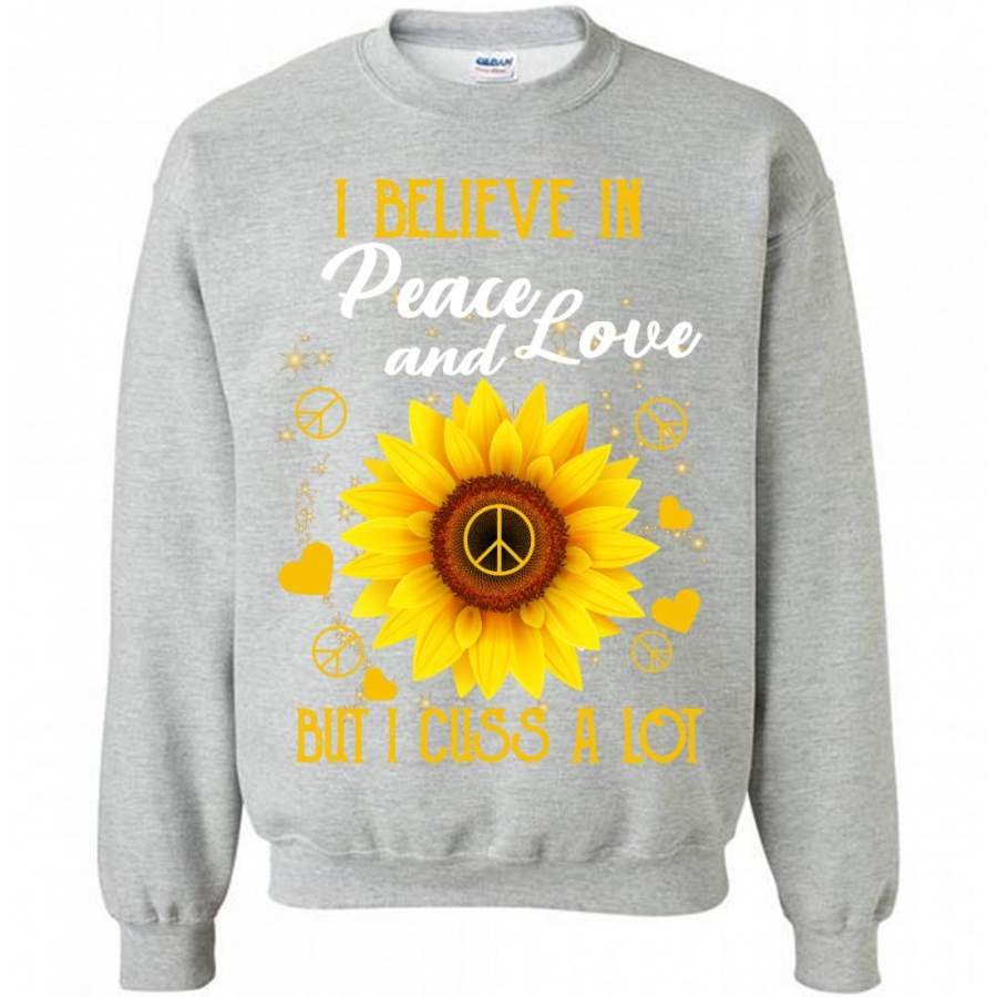 I Believe In Peace And Love But I Cuss A Lot, Sunflower Peace Sign Heart Lover (1) – Gildan Crewneck Sweatshirt