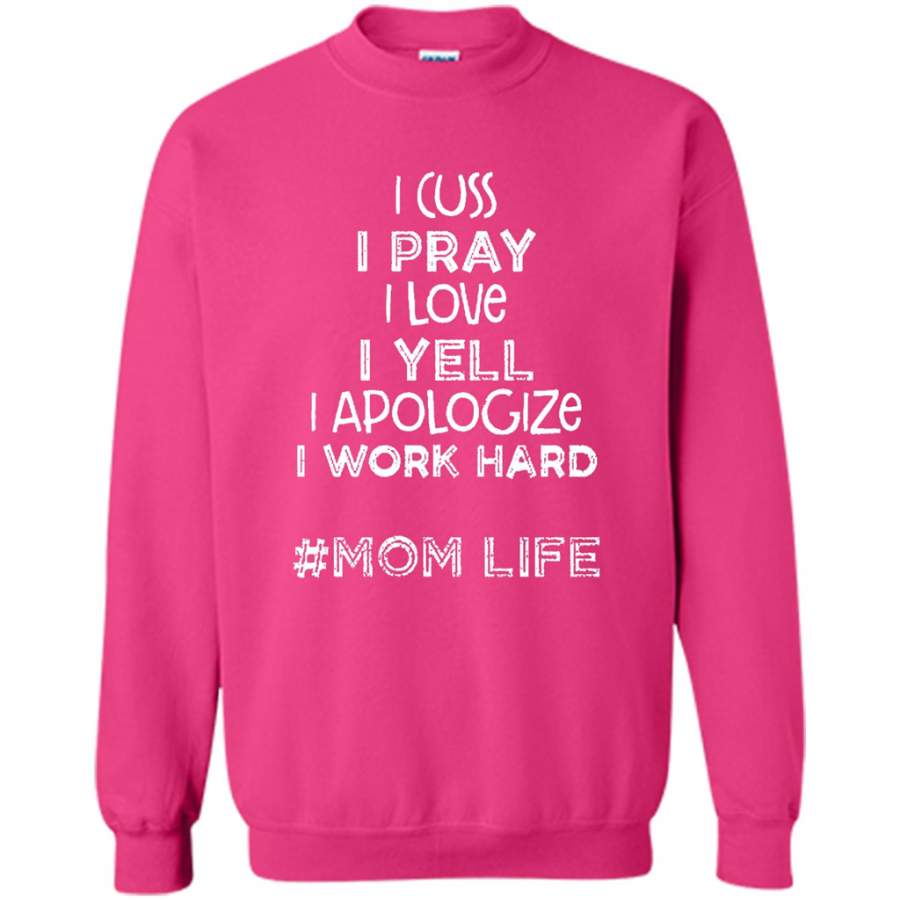 I Cuss I Pray I Love I Yell I Apologize I Work Hard Mom Life – Gildan Crewneck Sweatshirt