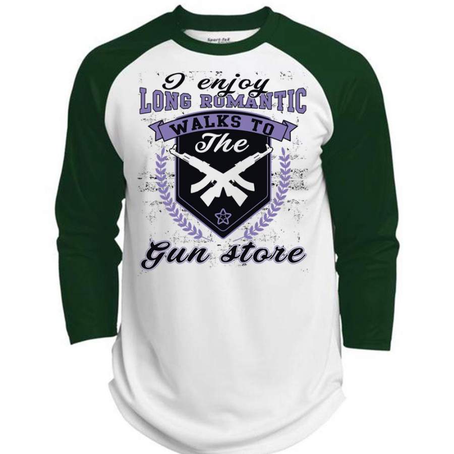 I Enjoy Long Romantic Walks To The Gun Store T Shirt, I Love Gunning T Shirt, Awesome T-Shirts (Polyester Game Baseball Jersey)