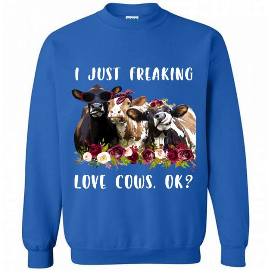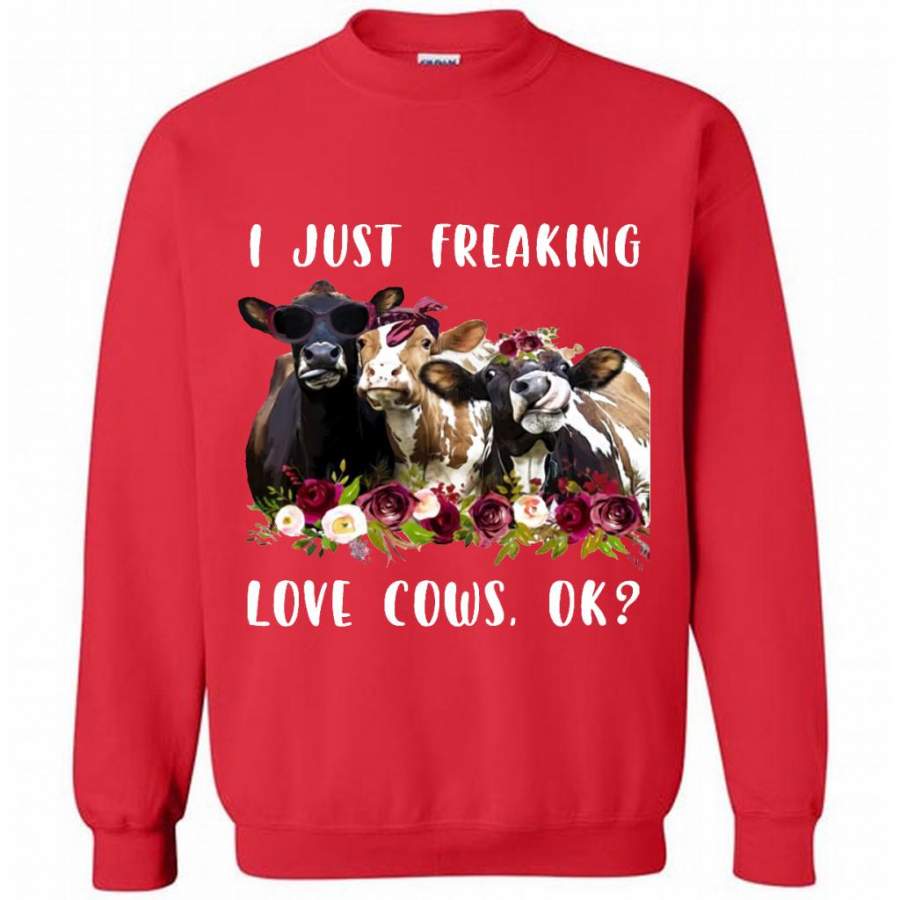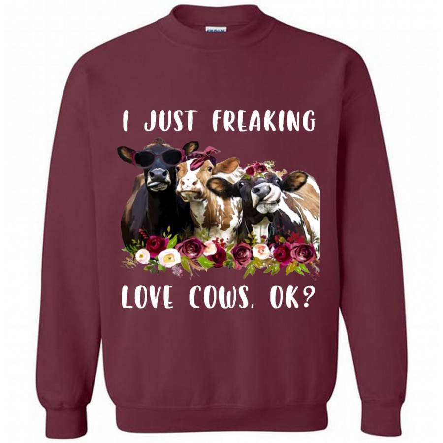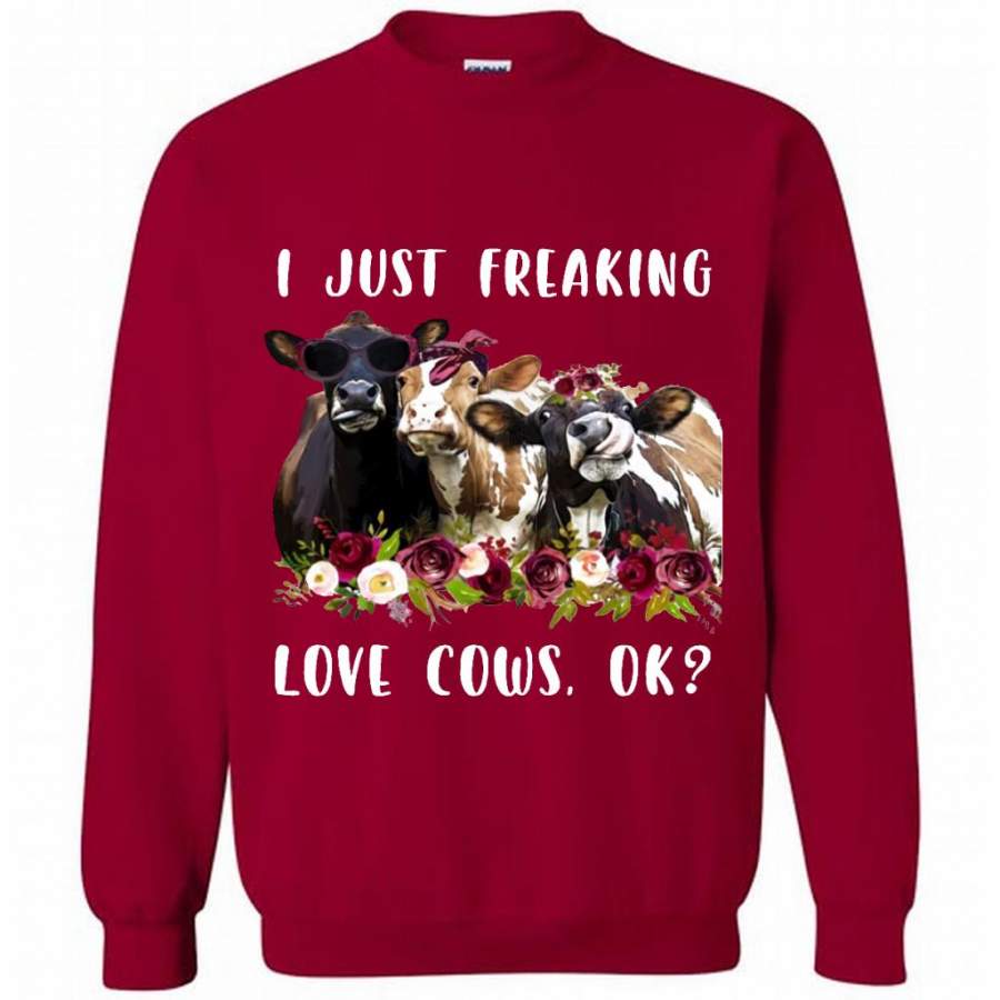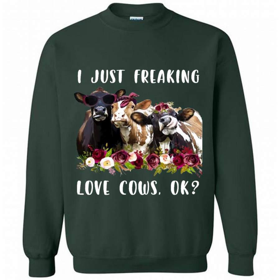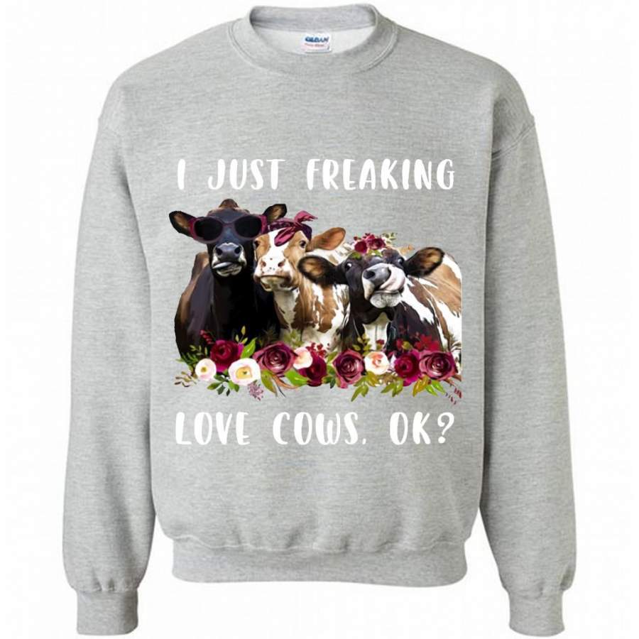 I Just Freaking Love Cows, Floral Cow Design – Gildan Crewneck Sweatshirt