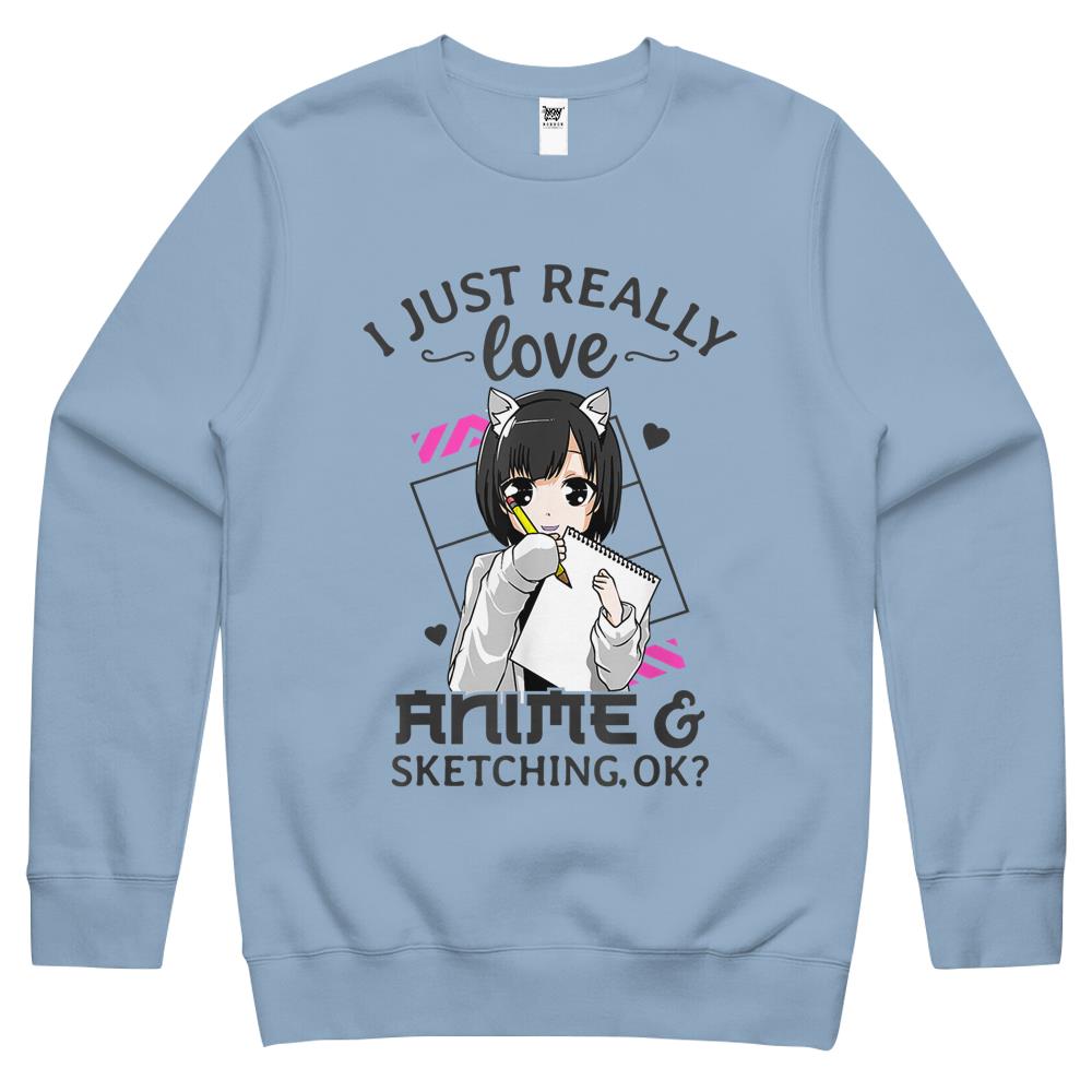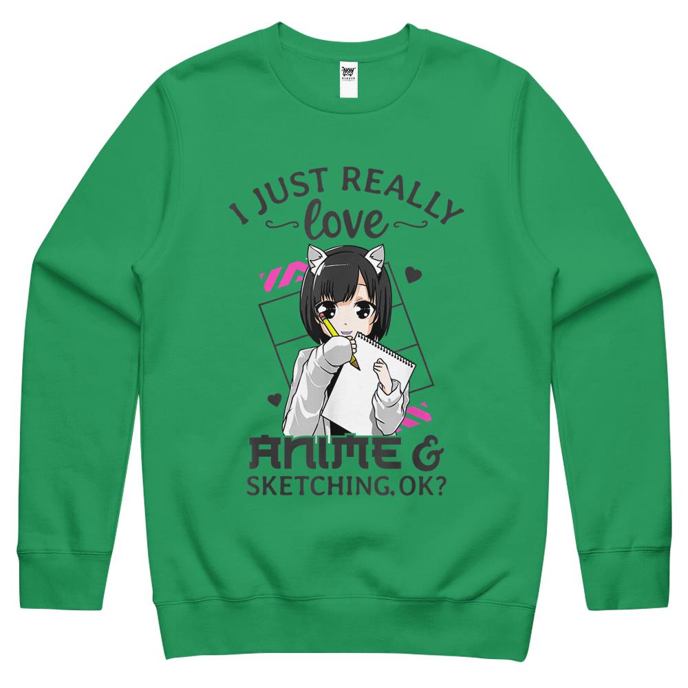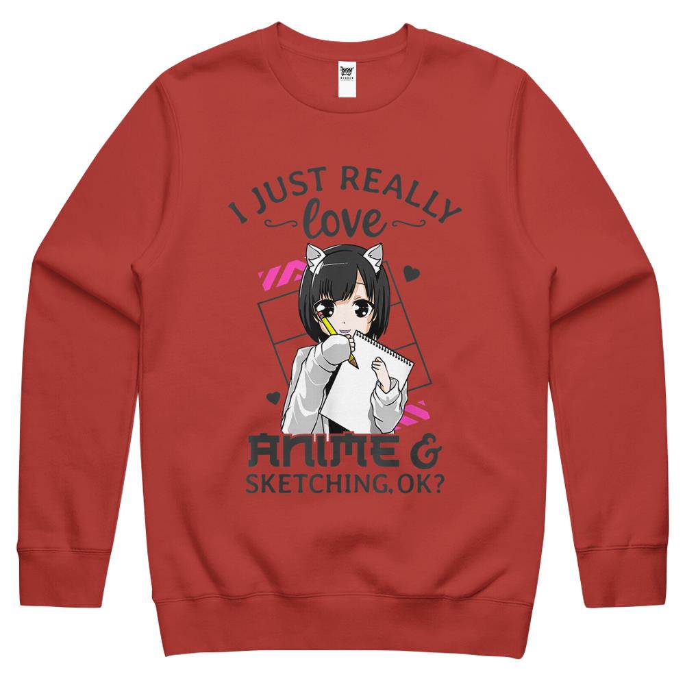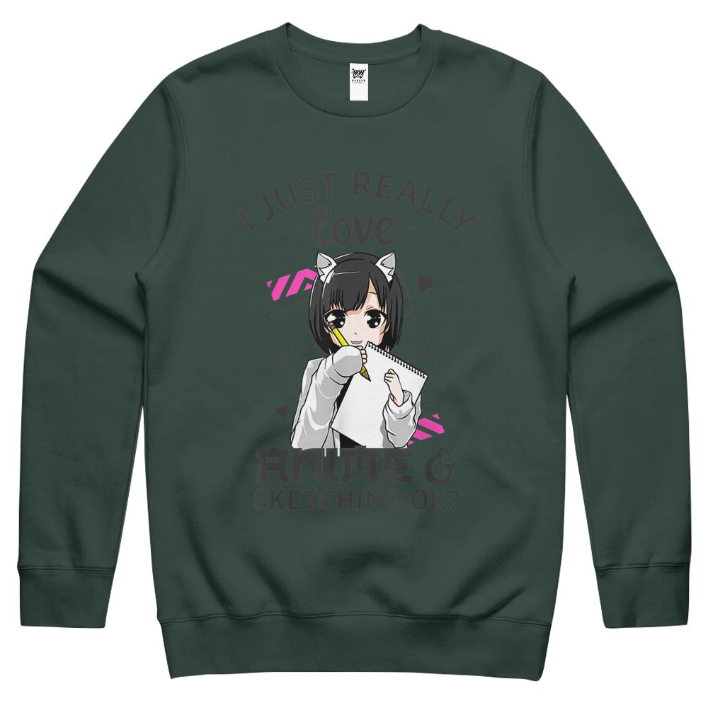 I Just Really Love Anime And Sketching Ok Anime Drawing Crewneck Sweatshirt