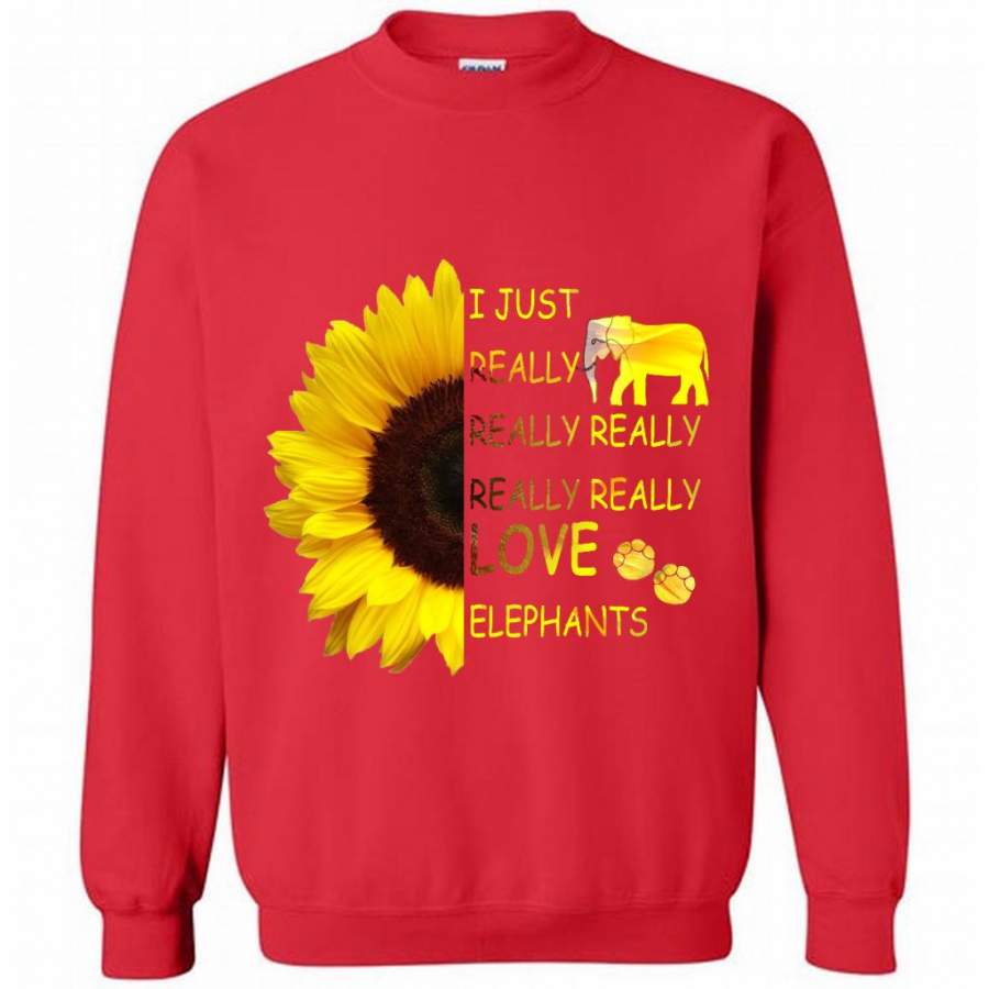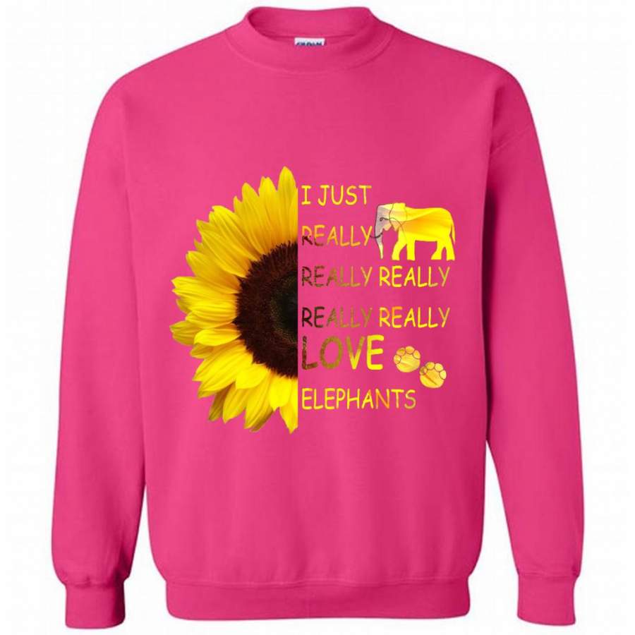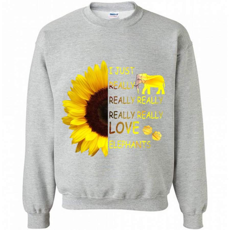 I Just Really Really Really Really Really Love Elephans, Sunflower Design – Gildan Crewneck Sweatshirt