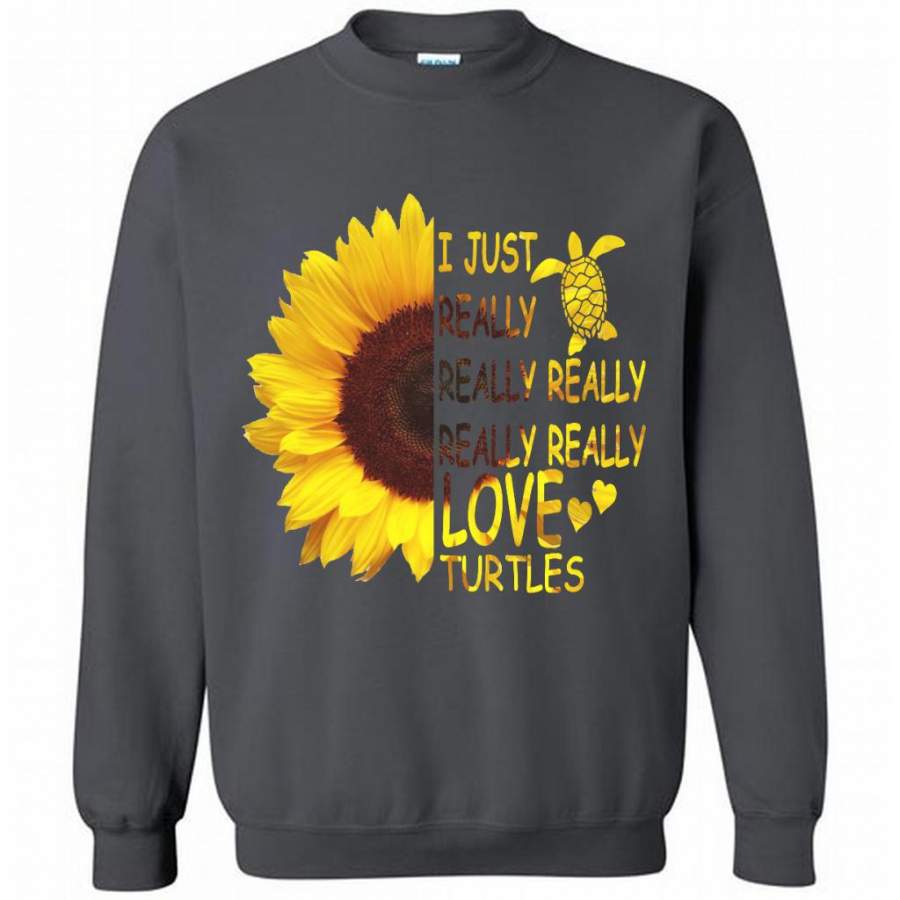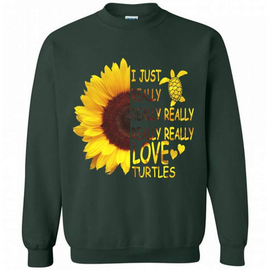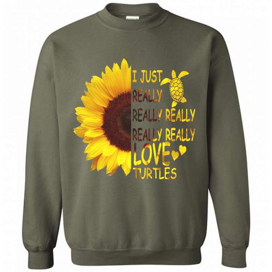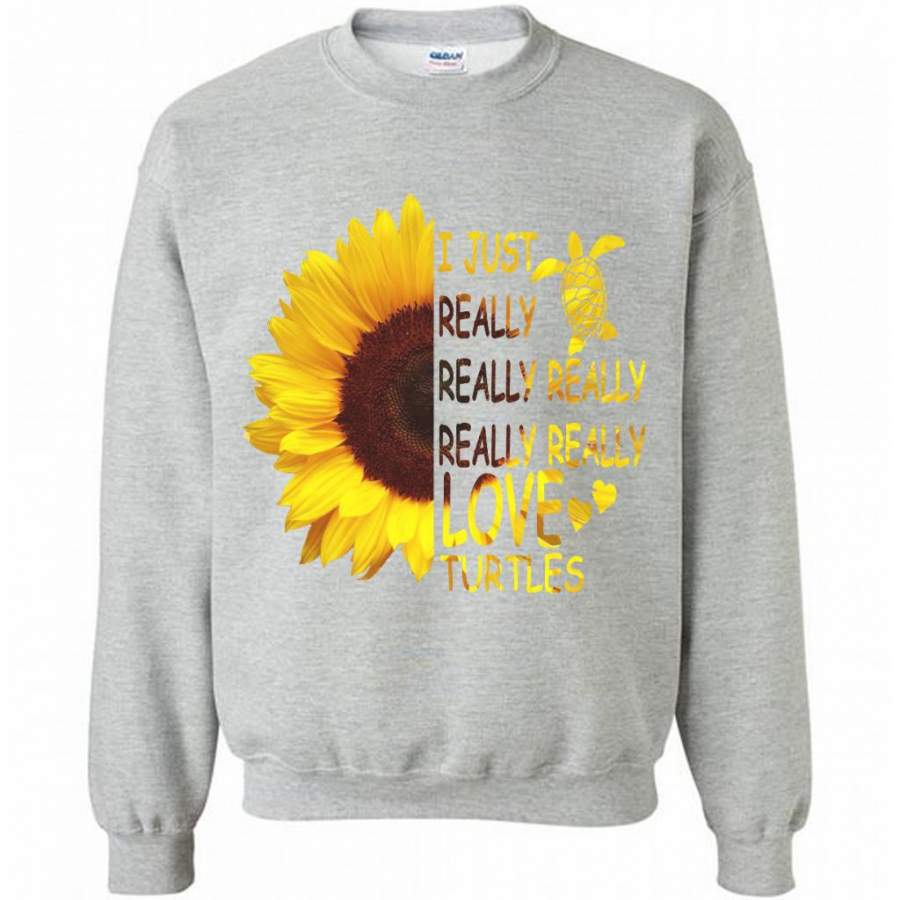 I Just Really Really Really Really Really Love Turtles Sunflower Design – Gildan Crewneck Sweatshirt