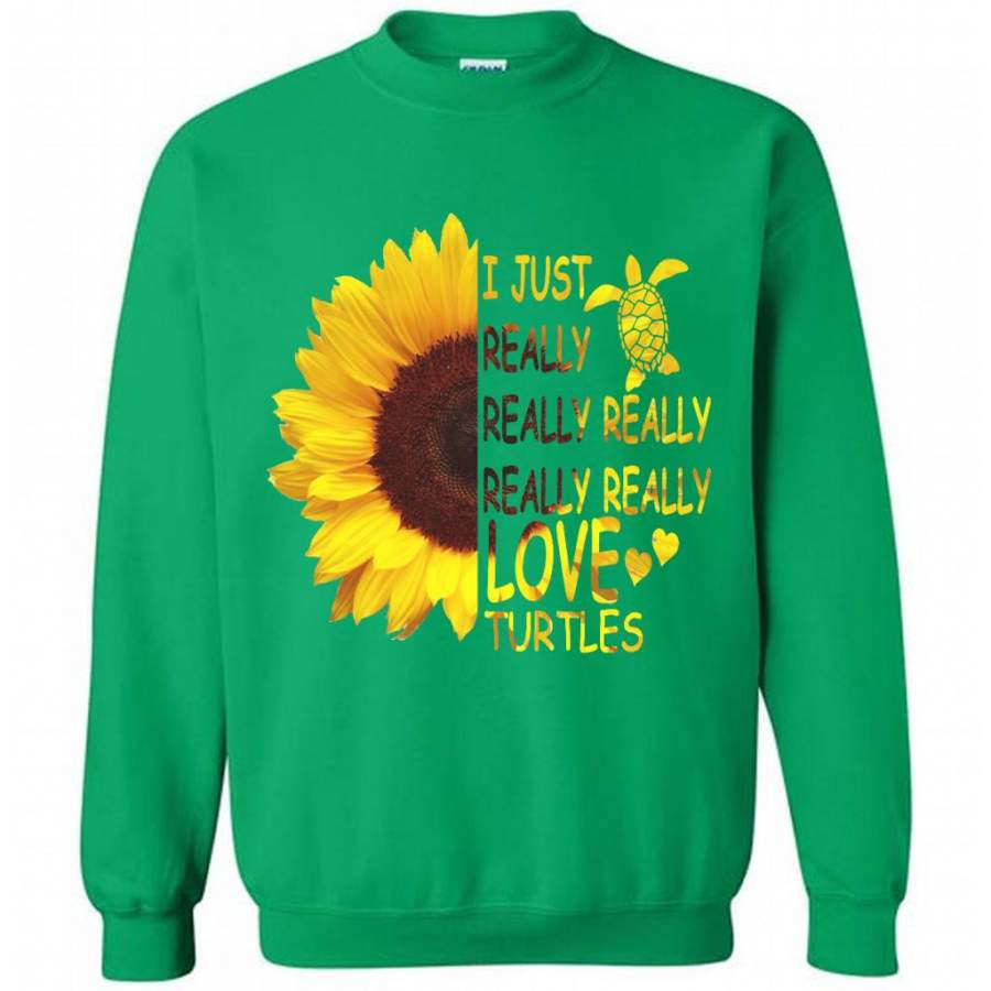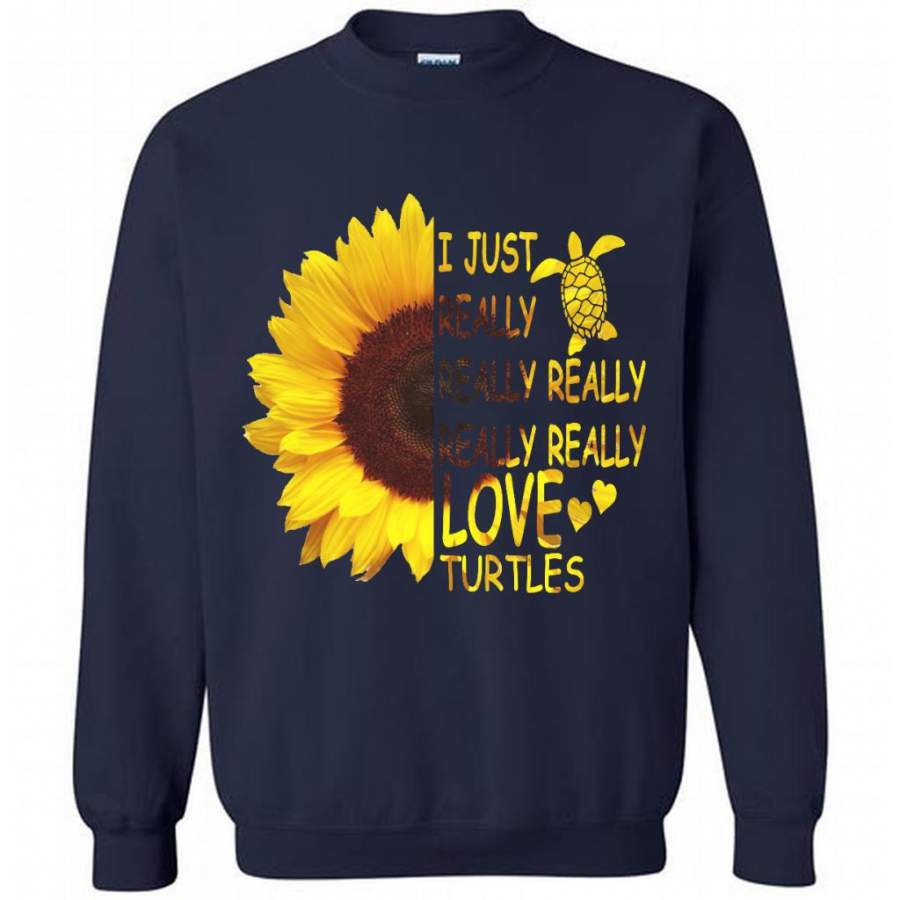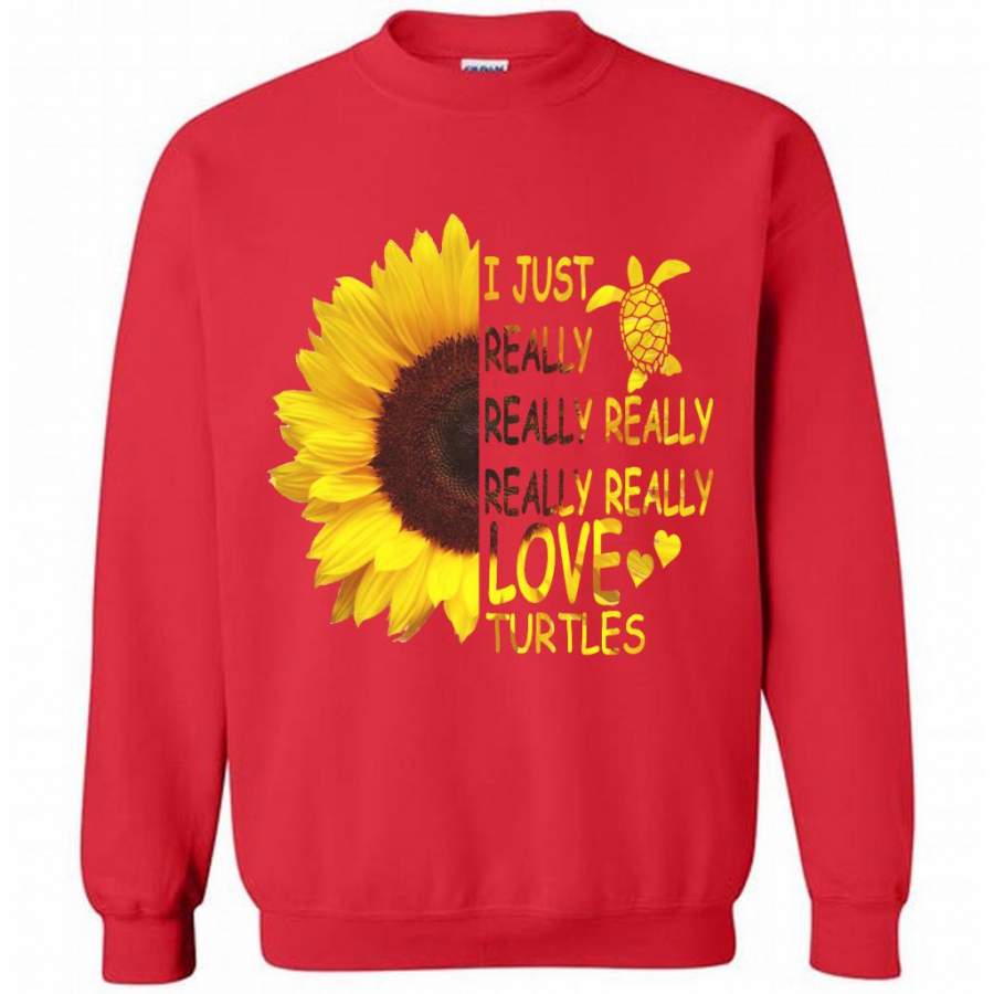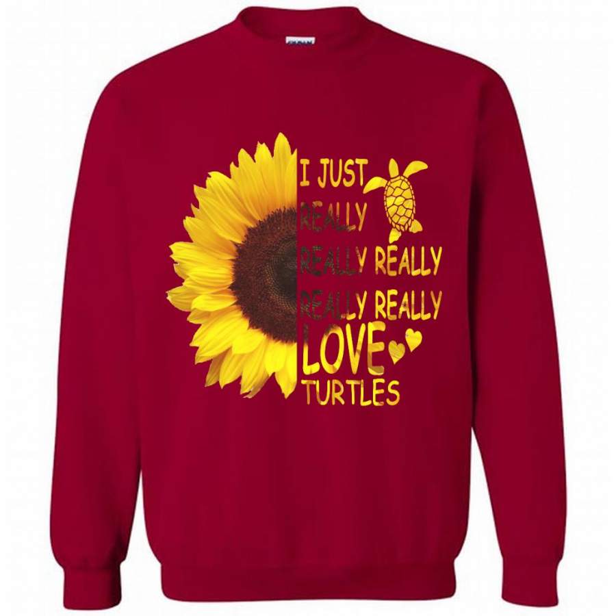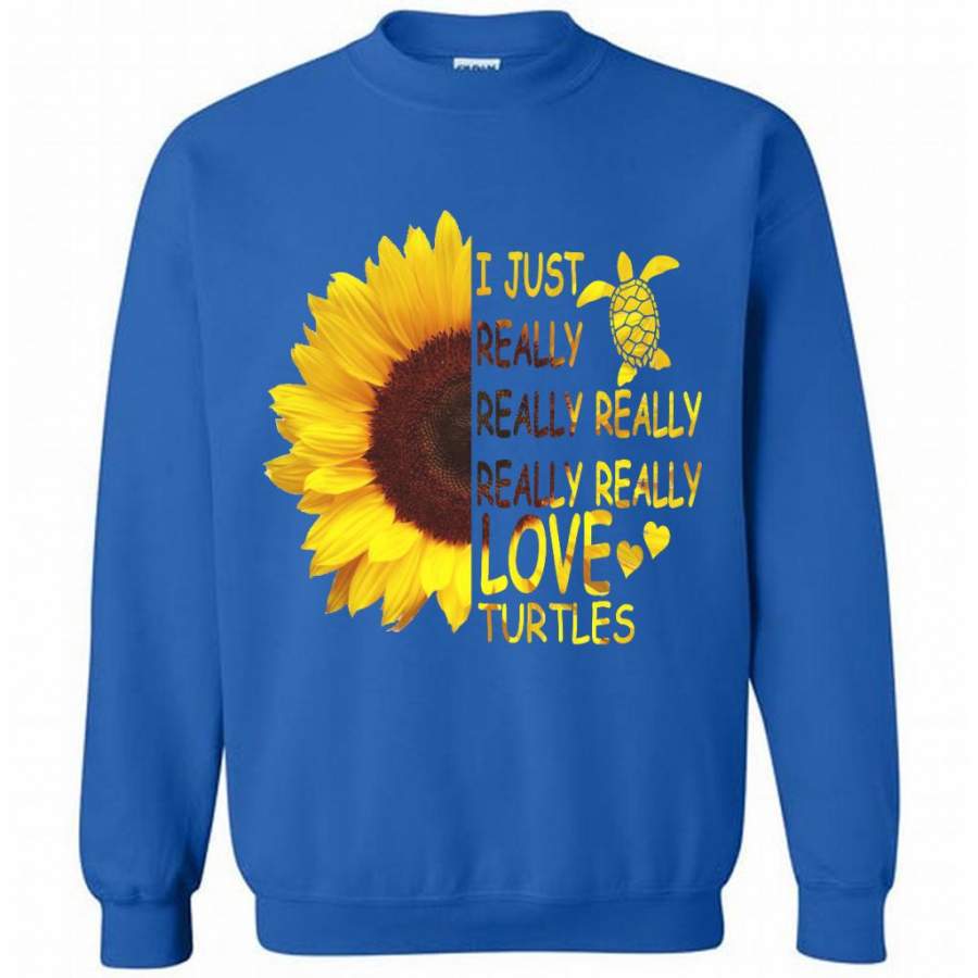I Just Really Really Really Really Really Love Turtles Sunflower Design – Gildan Crewneck Sweatshirt