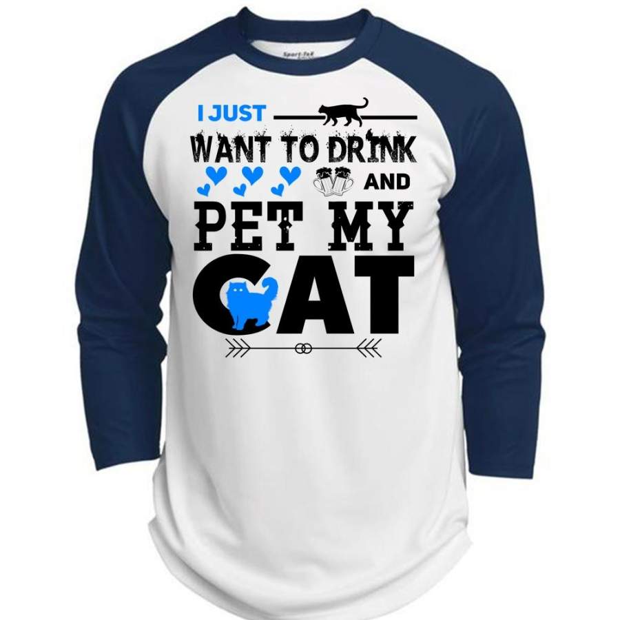 I Just Want To Drink And Pet My Cat T Shirt, I Love Cat T Shirt, Cool Pets T Shirt (Polyester Game Baseball Jersey)