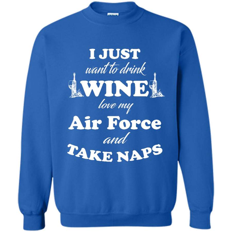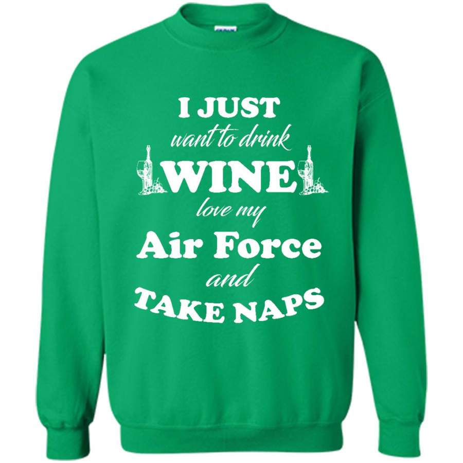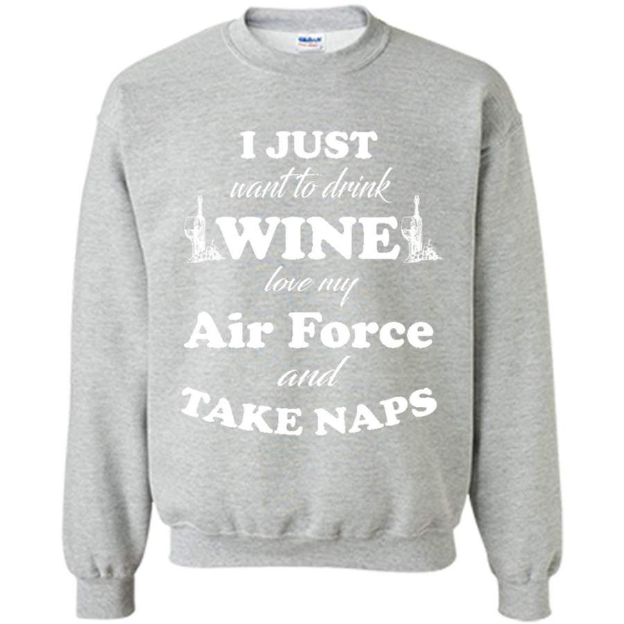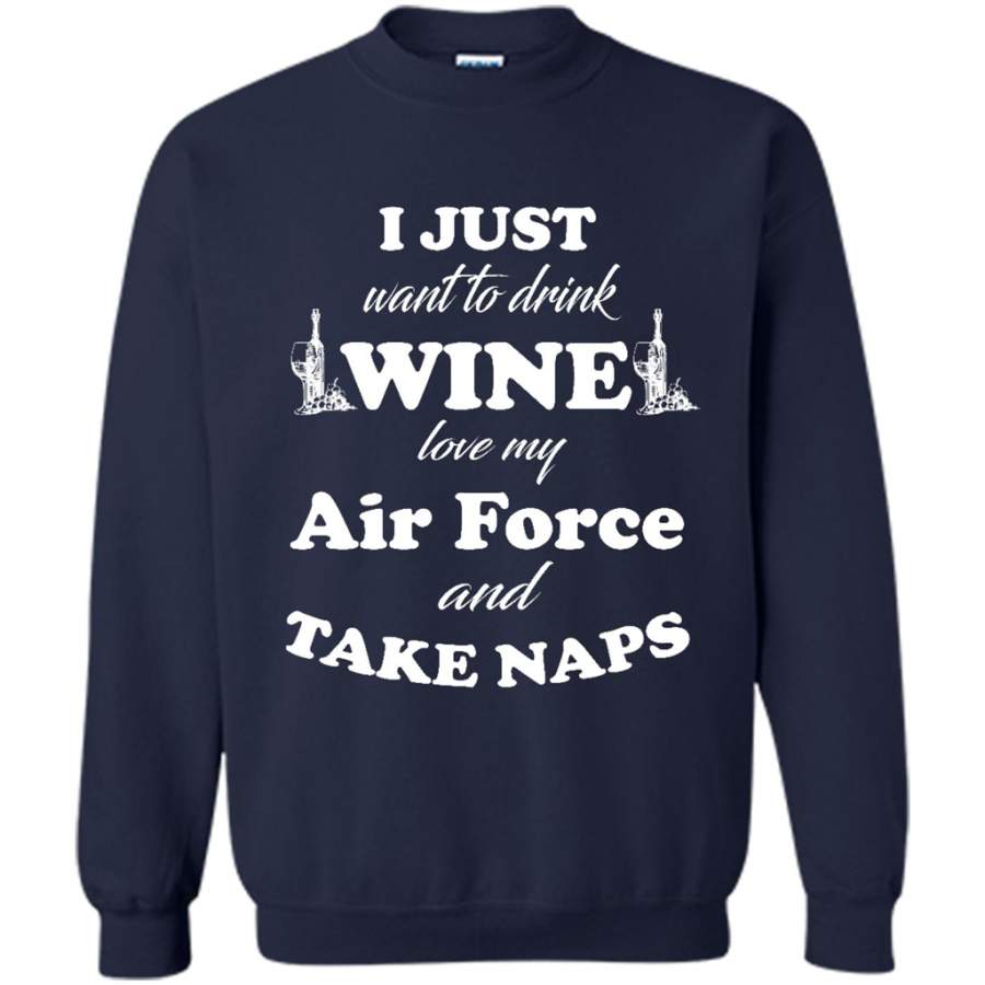 I Just Want To Drink Wine Love My Air Force And Take Naps – Gildan Crewneck Sweatshirt