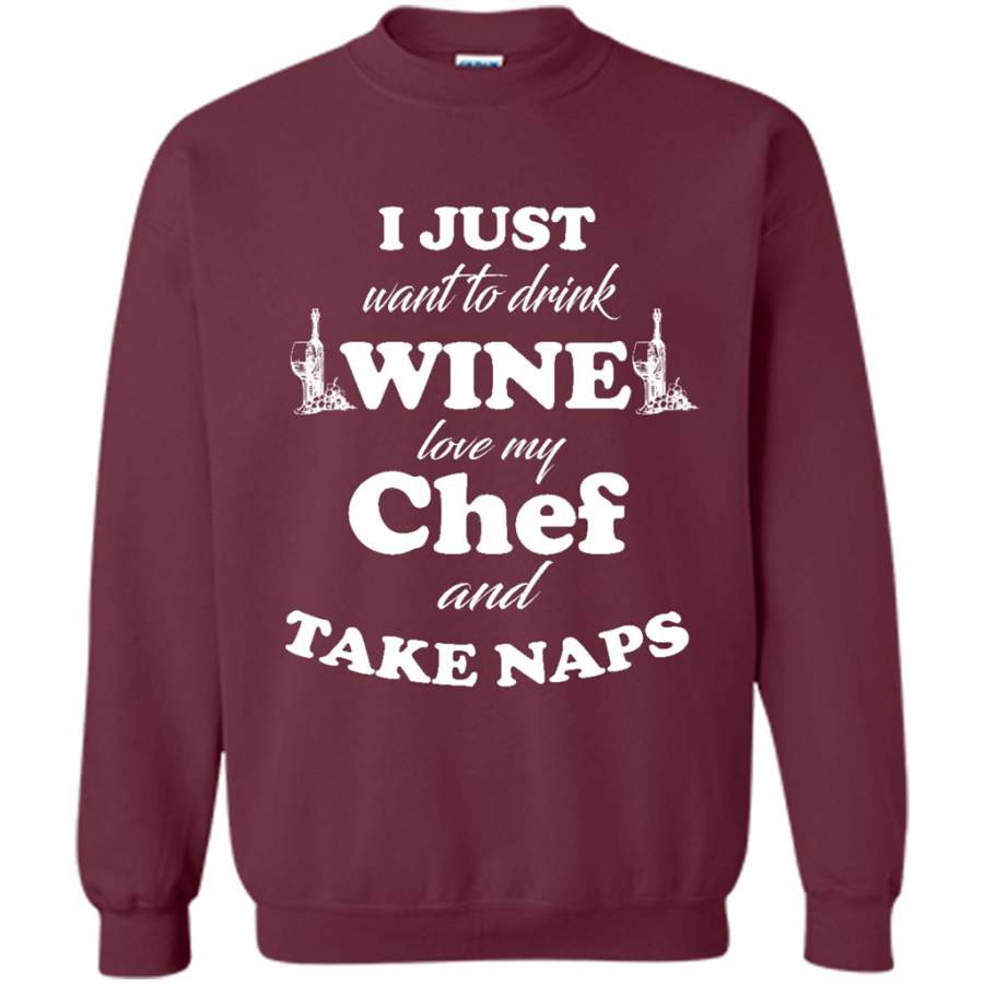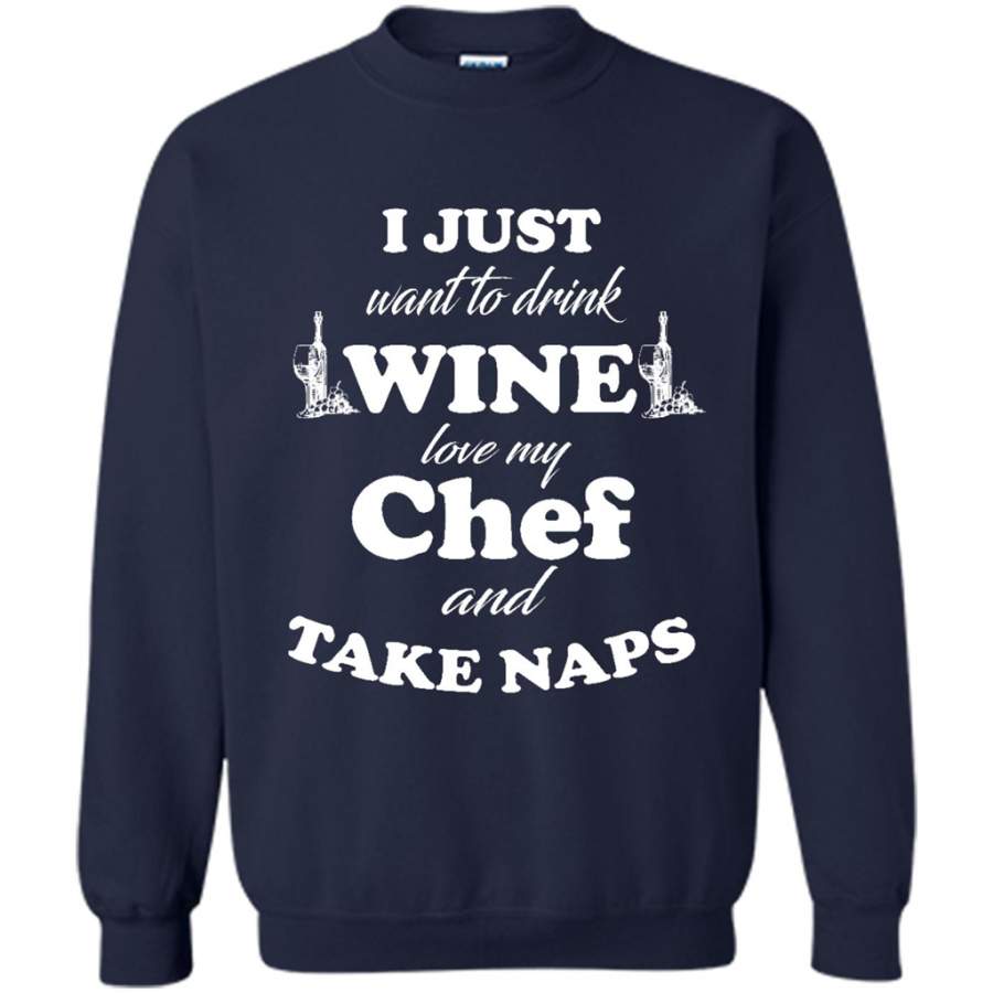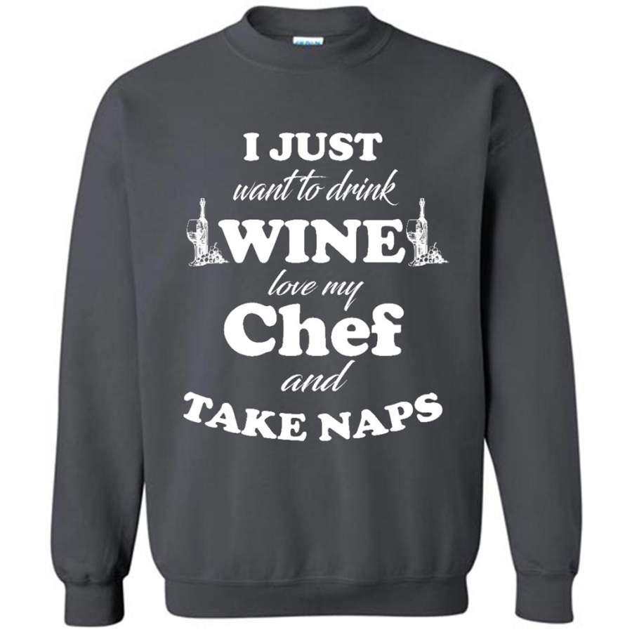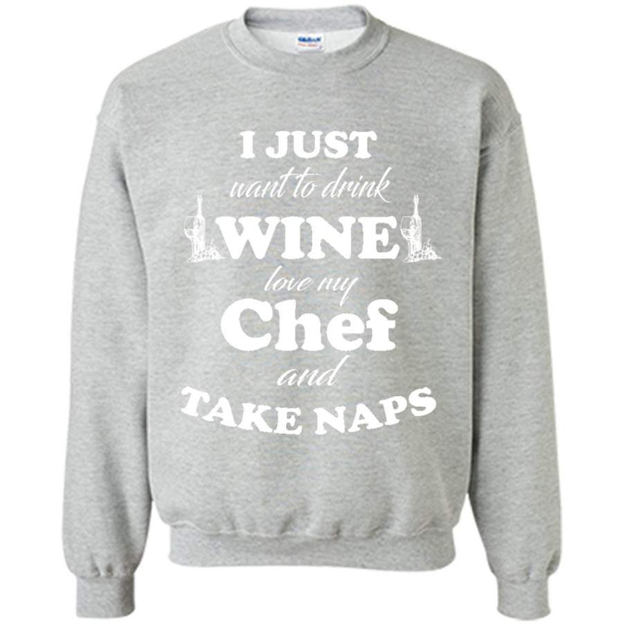 I Just Want To Drink Wine Love My Chef And Take Naps – Gildan Crewneck Sweatshirt