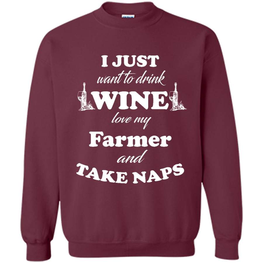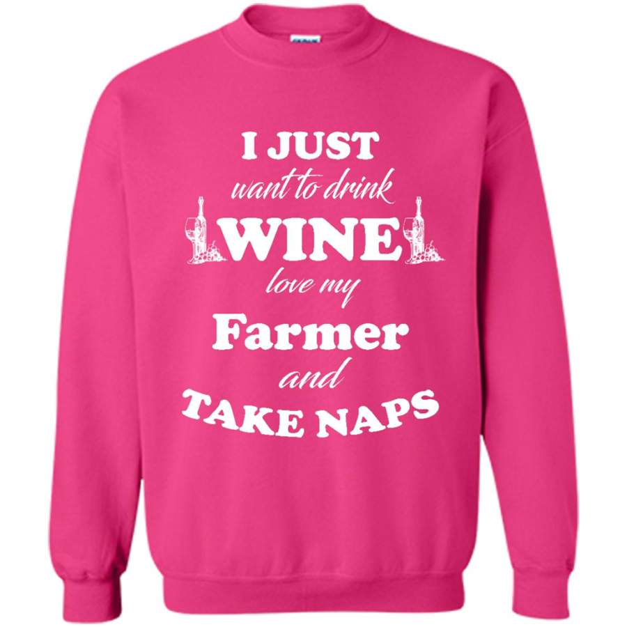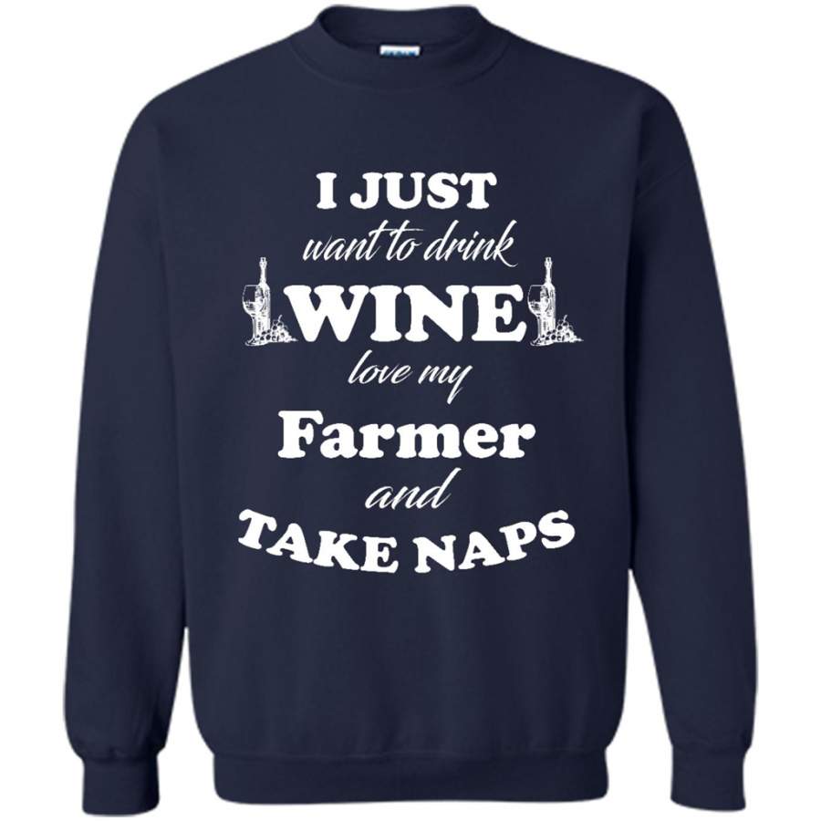 I Just Want To Drink Wine Love My Farmer And Take Naps – Gildan Crewneck Sweatshirt